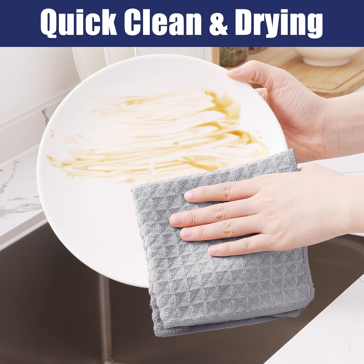 - High Absorbent & Fast Dry: The dish towels with double-sided waffle design, high absorbency, can quickly wipe stains from the surface of the items and fast dry
