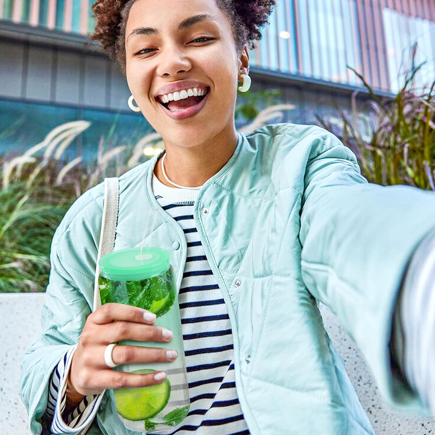 - Acrylic Lids: Each of our glass cans comes with an acrylic lid. The color of each acrylic lid matches the gradient color of the glass cup, making it a perfect match