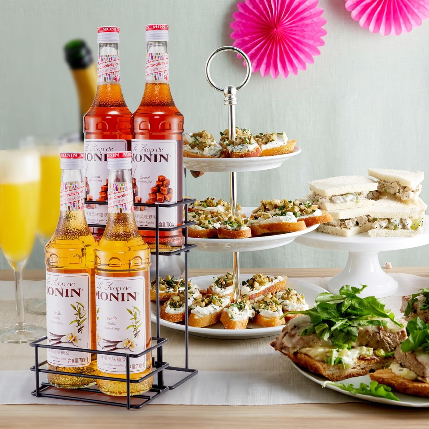 4 Bottle Coffee Syrup Organizer Coffee Syrup Rack for Coffee Bar Kitchen Small Wine Rack for Bar Family Storage for Syrup Wine Dressing
