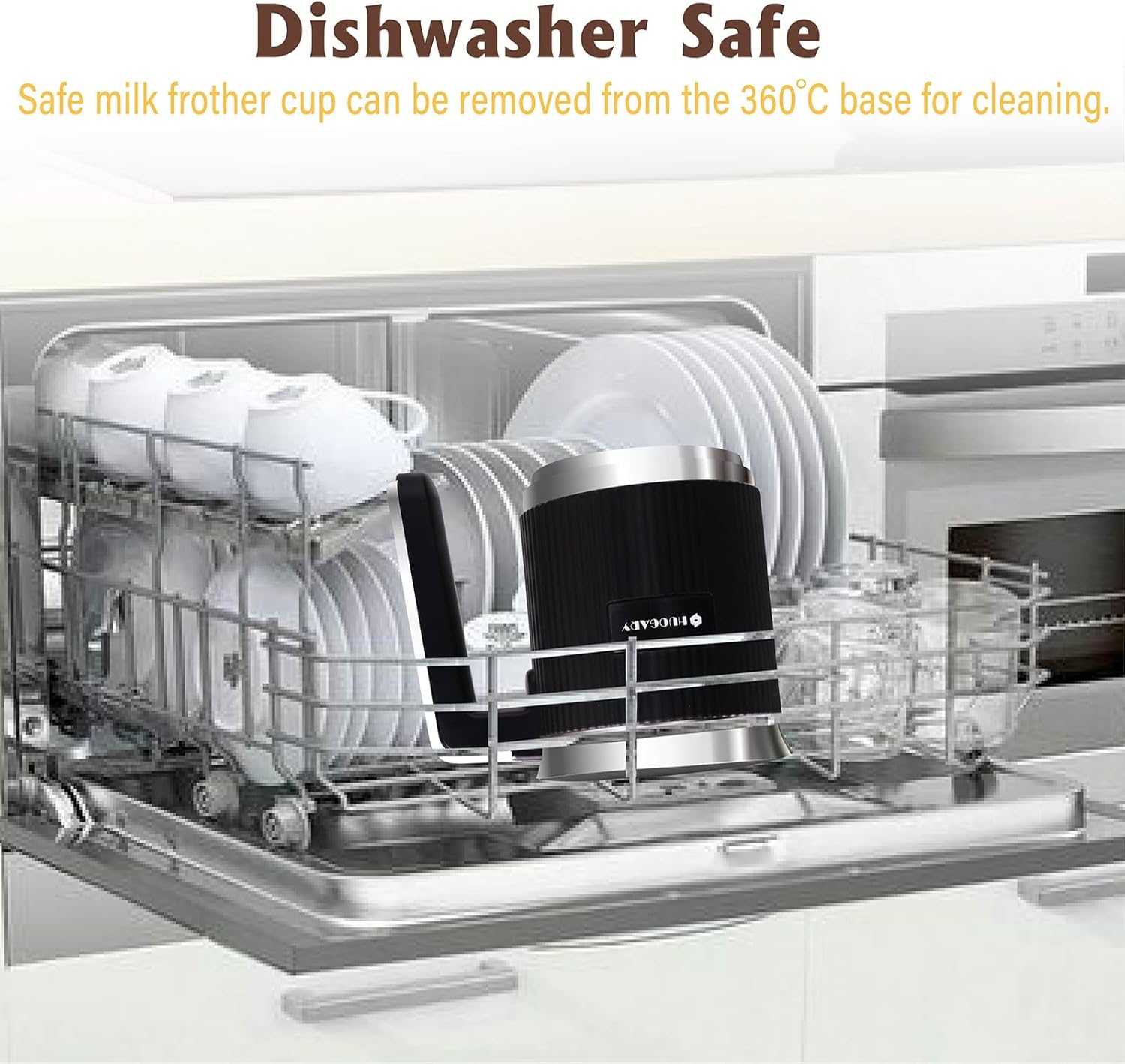 - ☕【Detachable Design & Dishwasher Safe 】-- It can free your hands. The base and body of the automatic milk frother are detachable, which is very convenient to removed from the base for cleaning, also the stainless steel milk jug is dishwasher safe,The removable milk jug features a convenient spout for easy pouring without splashing.