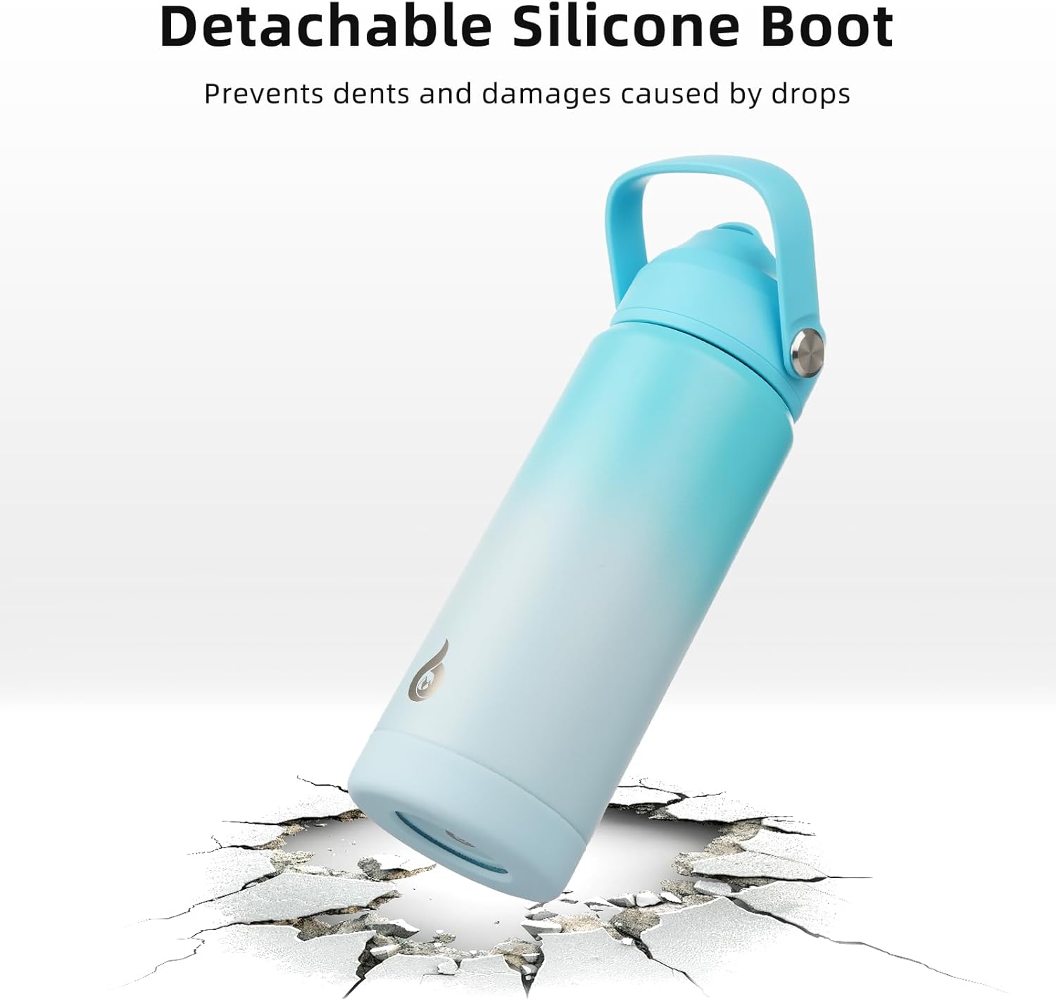 - NON-SLIP PROTECTIVE BOOT & DISHWASHER SAFE: This stainless steel water bottle comes with a detachable silicone boot to protect the bottom from bump damage. The wide mouth design of our water cup allows for easy filling, pouring, and cleaning. With 2 straws and 1 straw brush, you can easily clean the nozzle and straw with straw brush. It is also dishwasher safe, saving you time and effort in maintaining its cleanliness and hygiene