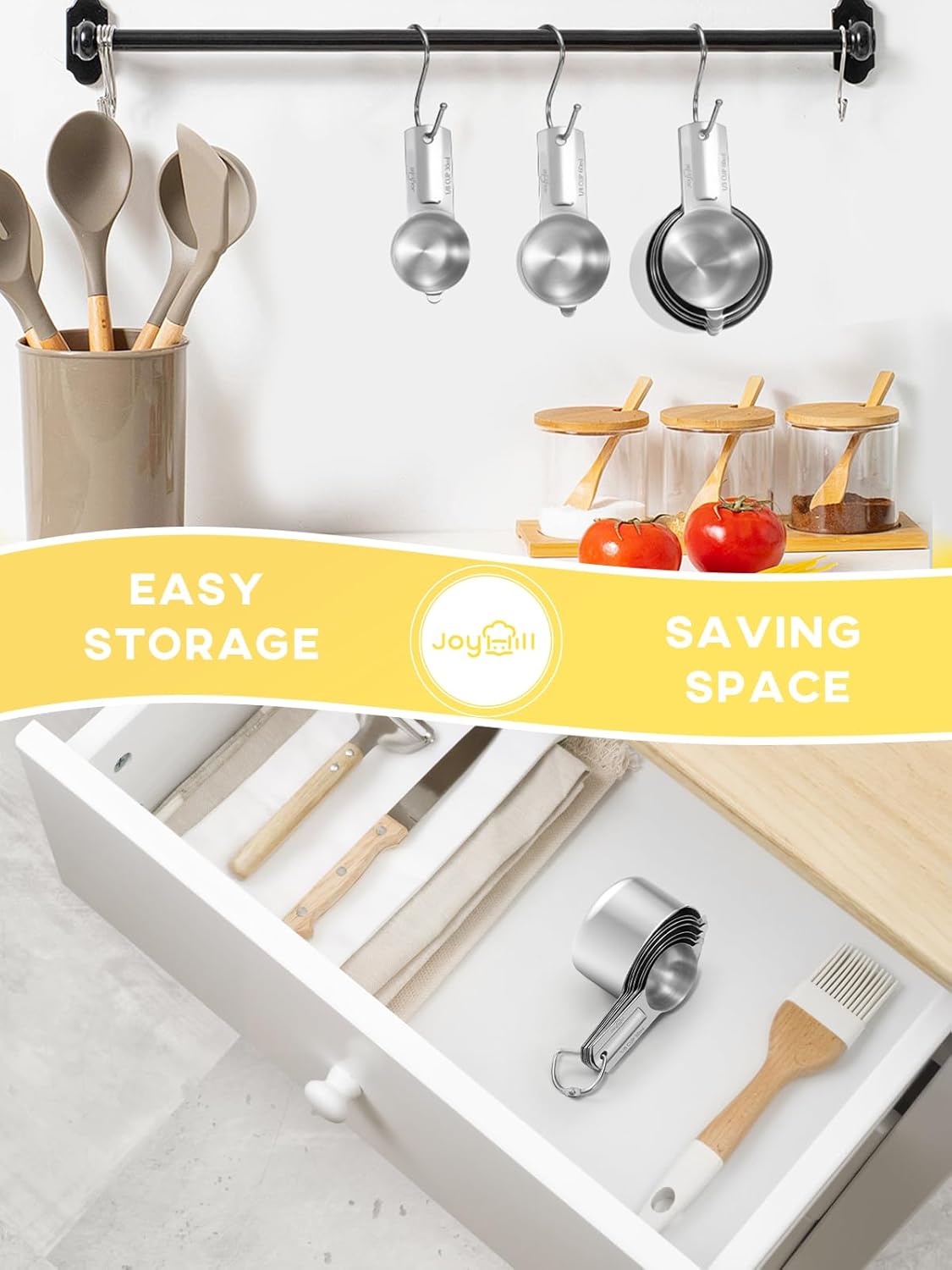 - 304 Stainless Steel: Joyhill measuring cups are made of quality food grade 18/8 stainless steel. You can cook dry and liquid ingredients with premium metal measuring cups and keep a healthy lifestyle