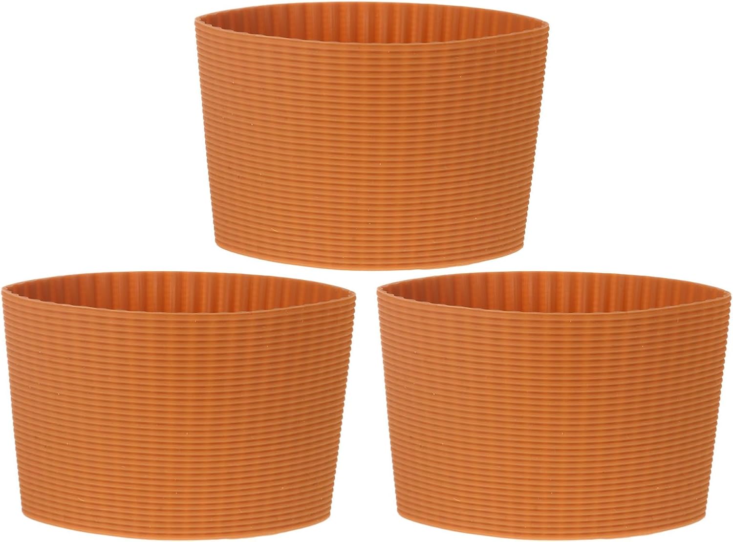 uxcell 3Pcs Coffee Cup Sleeve, Silicone Cup Sleeve Non-slip Glass Water Bottle Mug Sleeves Brown