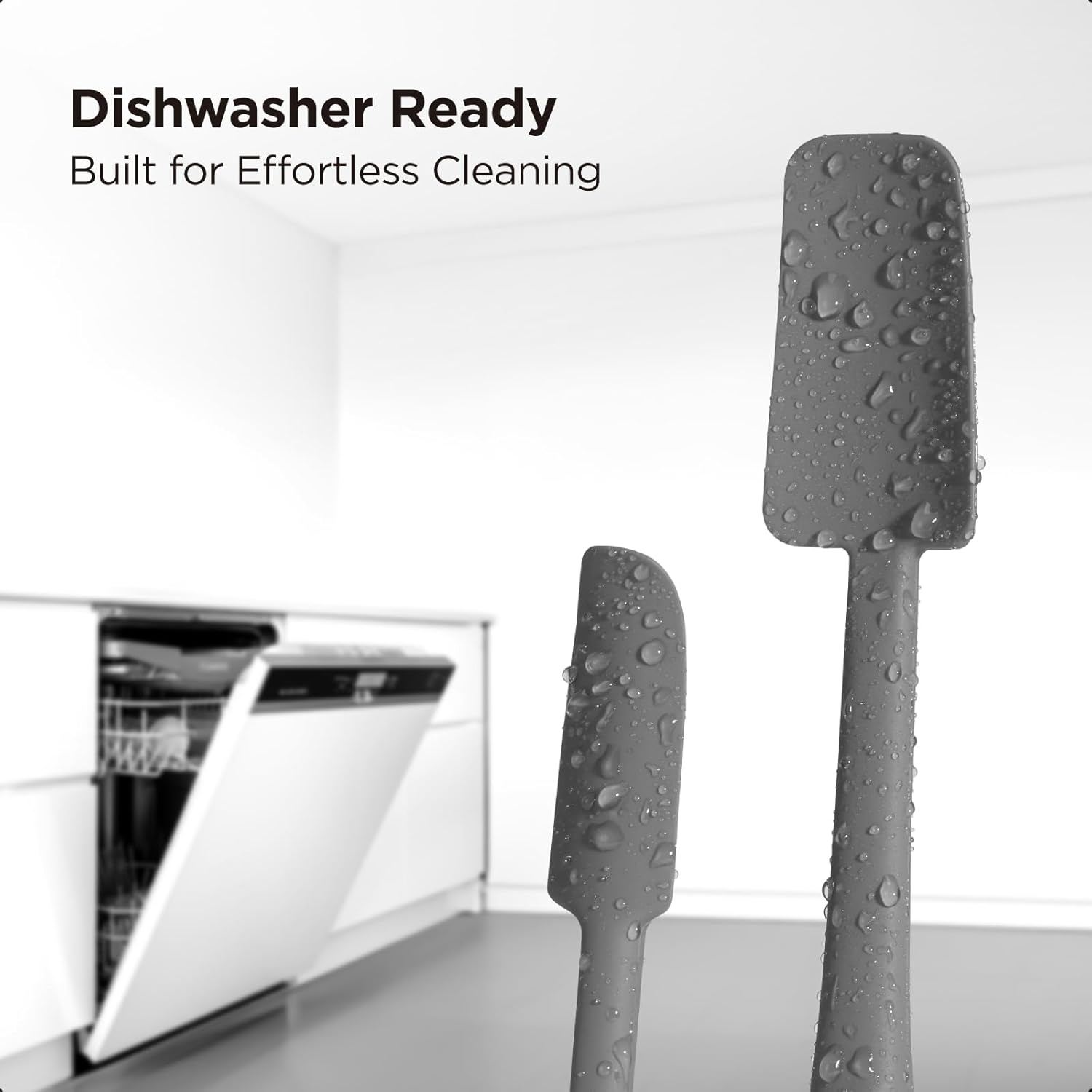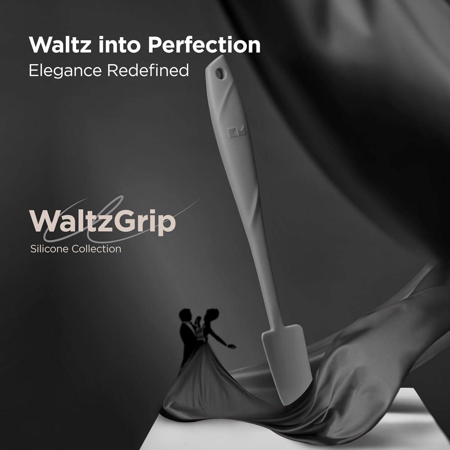 Kitchen Mama WaltzGrip Platinum Silicone Jar and Can Spatula Utensil Set: Heat Resistant, Nonstick Scraper, Scooping, Perfect for Smoothies, Jam, Cream, Butter, Dishwasher Cooking Gadget (Metal Gray)