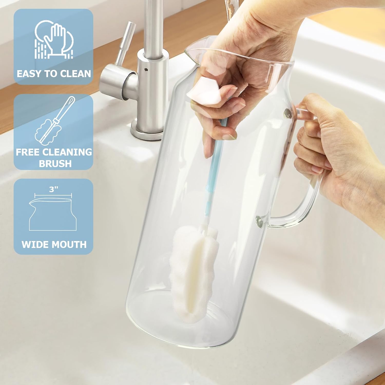 Yirilan Glass Pitcher, 1.8 Liter Water Pitcher with Lid, Beverage Pitchers for Hot, Cold Water, Iced Tea and Juice Drink with Cup Brush