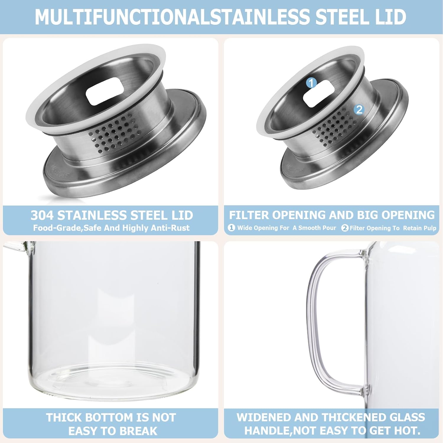 - SERVING FOR ALL OCCASION: This glass tea pitcher is widely used for water, iced tea, hot tea, fruit-infused water, homemade beverages, cold brew coffee, sangria, juice, lemonade, milk, wine, cocktail, light smoothie, etc. Suitable for daily needs at home, outdoors, parties, holiday gifts, etc