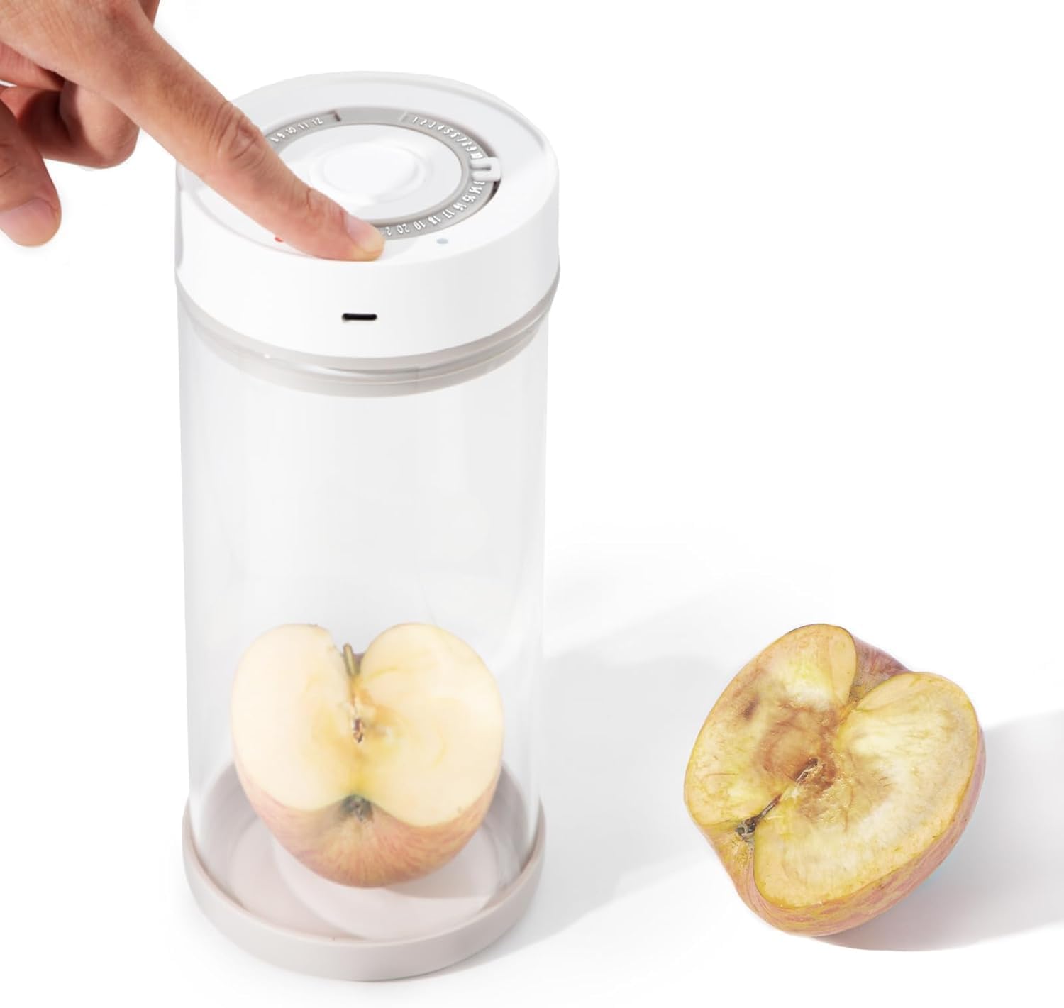 - 【ONE BUTTON OPERATION & DATE TRACKER】Simply press the top button on Minidiva smart vacuum food containers and the air in the canisters will exhaust within 10 seconds to 20 seconds, with the lid in sealed condition. And you can turn the grey date tracker on the lid to record the storage date, knowing the exact storage date will help reduce food waste.