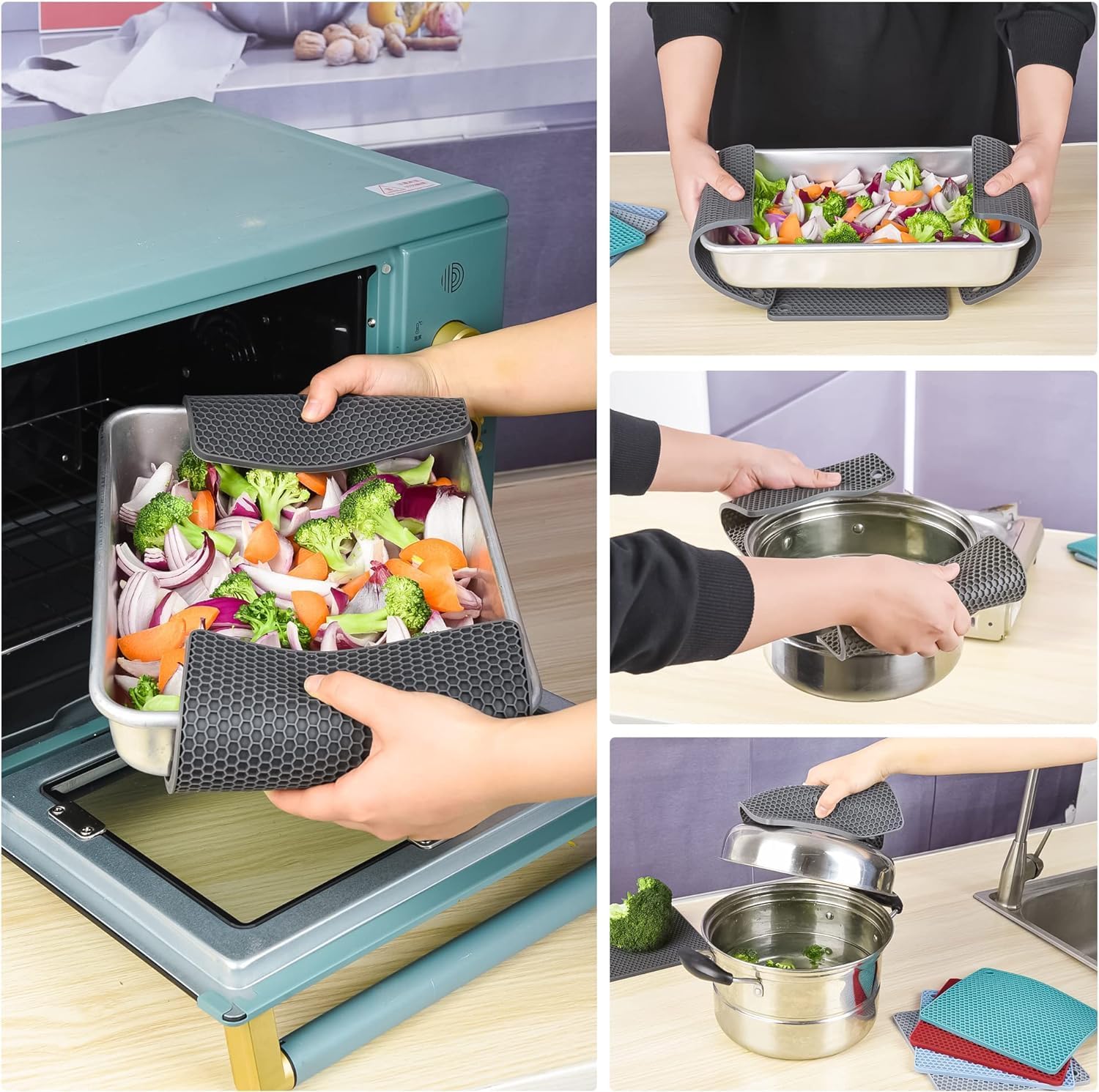 - ★ EASY TO STORE & DURABLE-Hang our dark grey hot pads on hook, simply hand-wash and dishwasher safe, tested to withstand repeated twisting & bending, flexible and durable, perfect size: 7,28"x7,28" and 0.24" thickness.