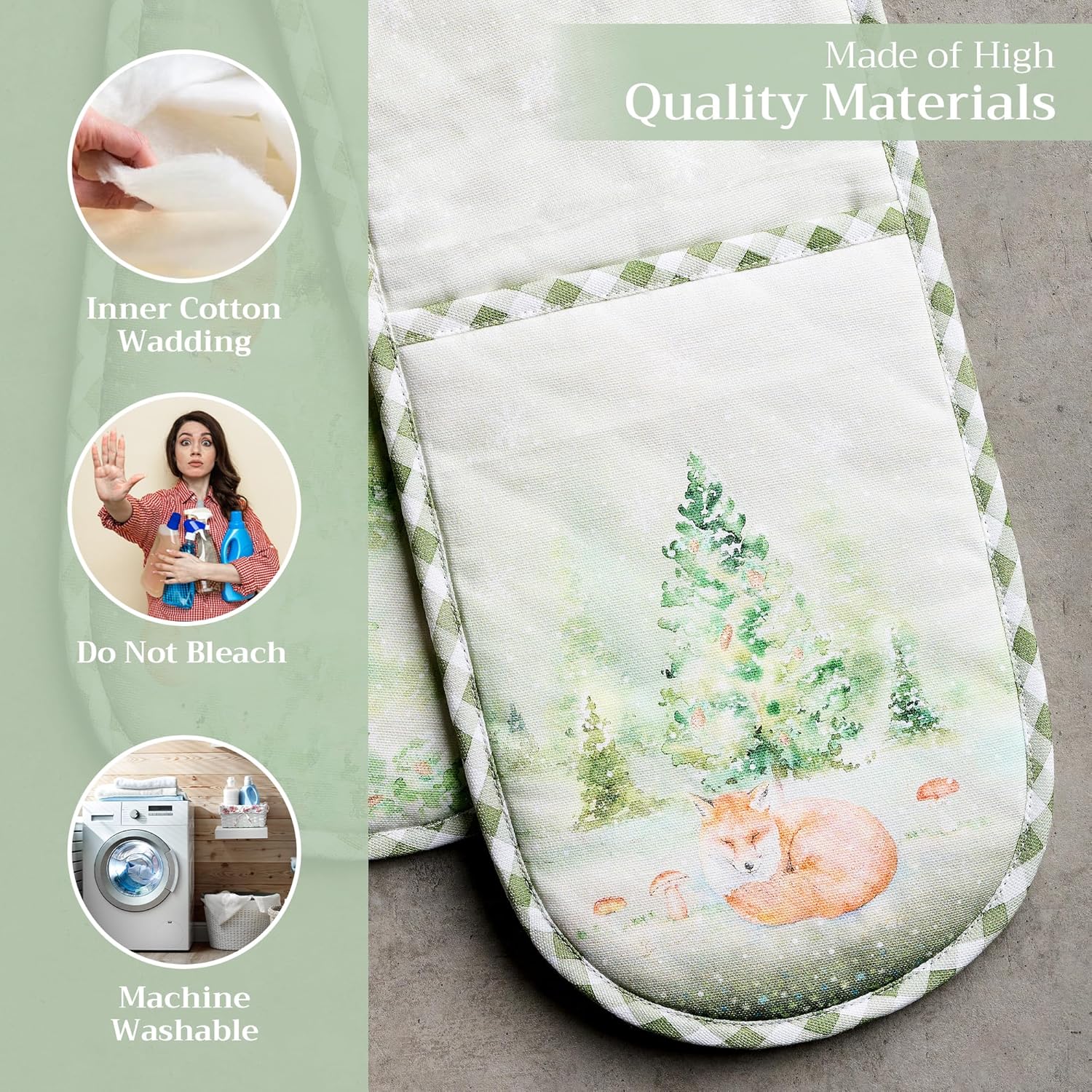 Maison d' Hermine Double Oven Mitts 100% Cotton 7"x35" Double Oven Mitt Heat Resistant BBQ Cooking Gloves with Loop, Baking, Grilling, Home, Kitchen, Handling Hot Pans (Winter Mornings)