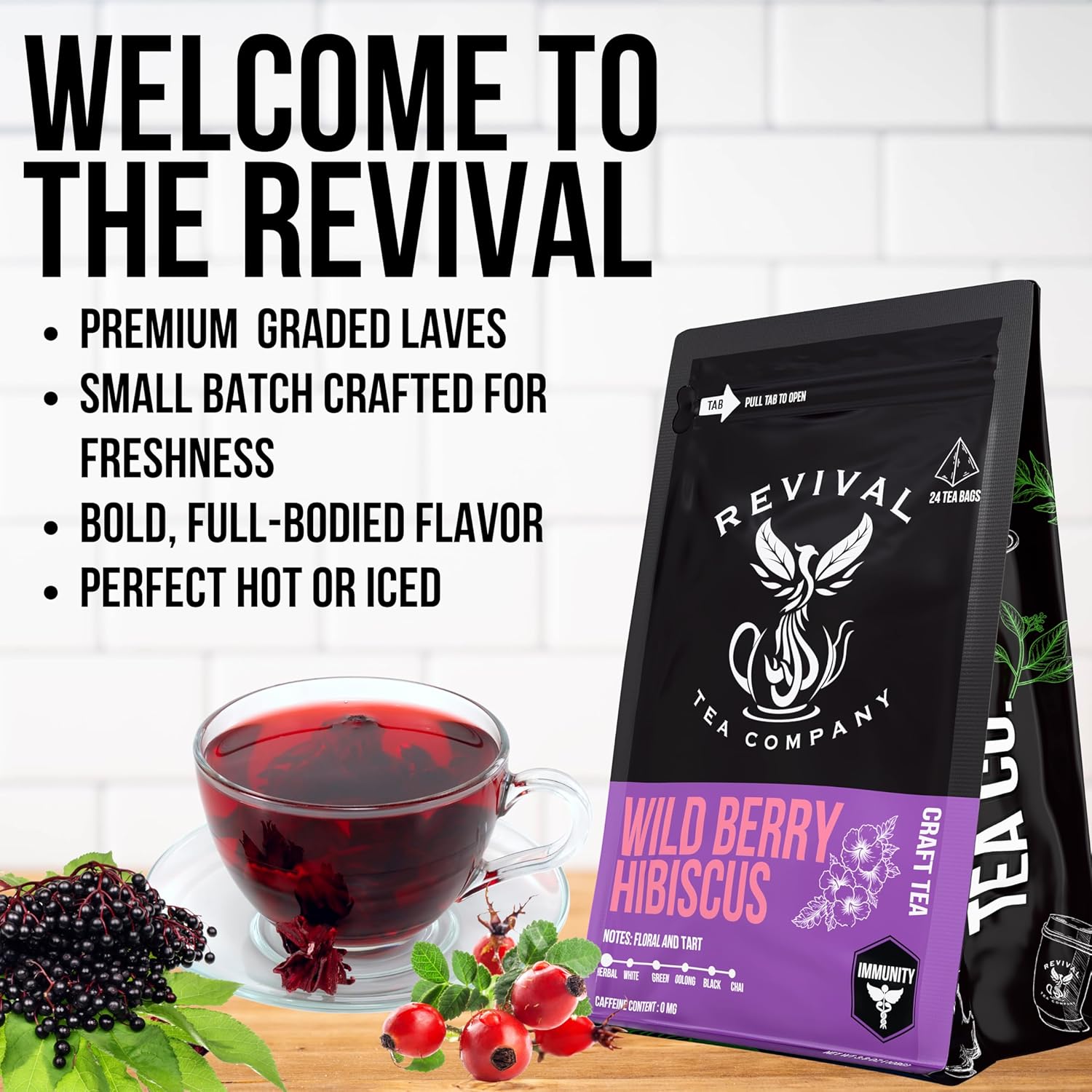 - Available in Bags or Loose Leaf: Revival Tea blends are crafted to be enjoyed however you prefer your tea. Our Wild Berry Hibiscus Tea comes in packs of 24 sachets (tea bags) or in loose leaf form.