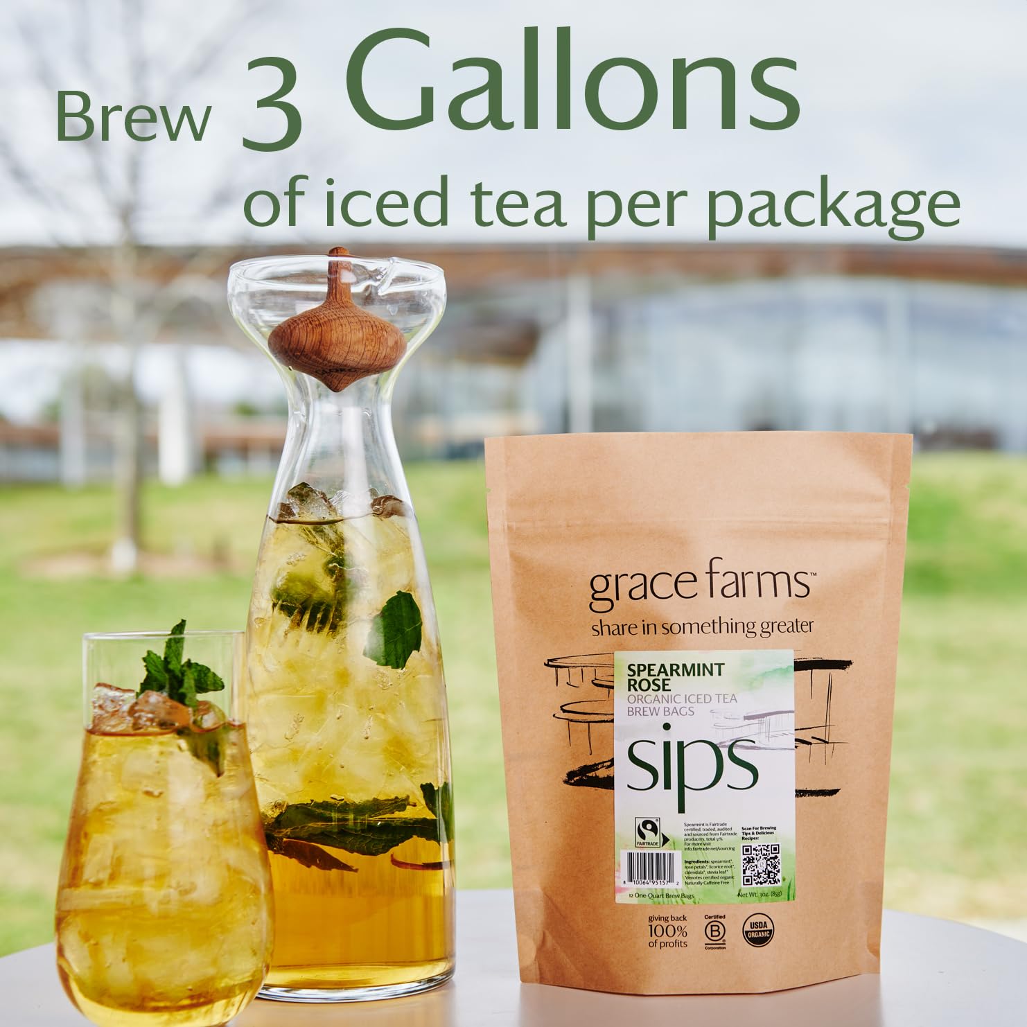 Grace Farms SPEARMINT ROSE ORGANIC ICED TEA (Twelve 1qt. Brew Bags, 3 Gallons) | Refreshing and Spiced, Naturally Sweet Sugar-Free | Easy Cold Brew