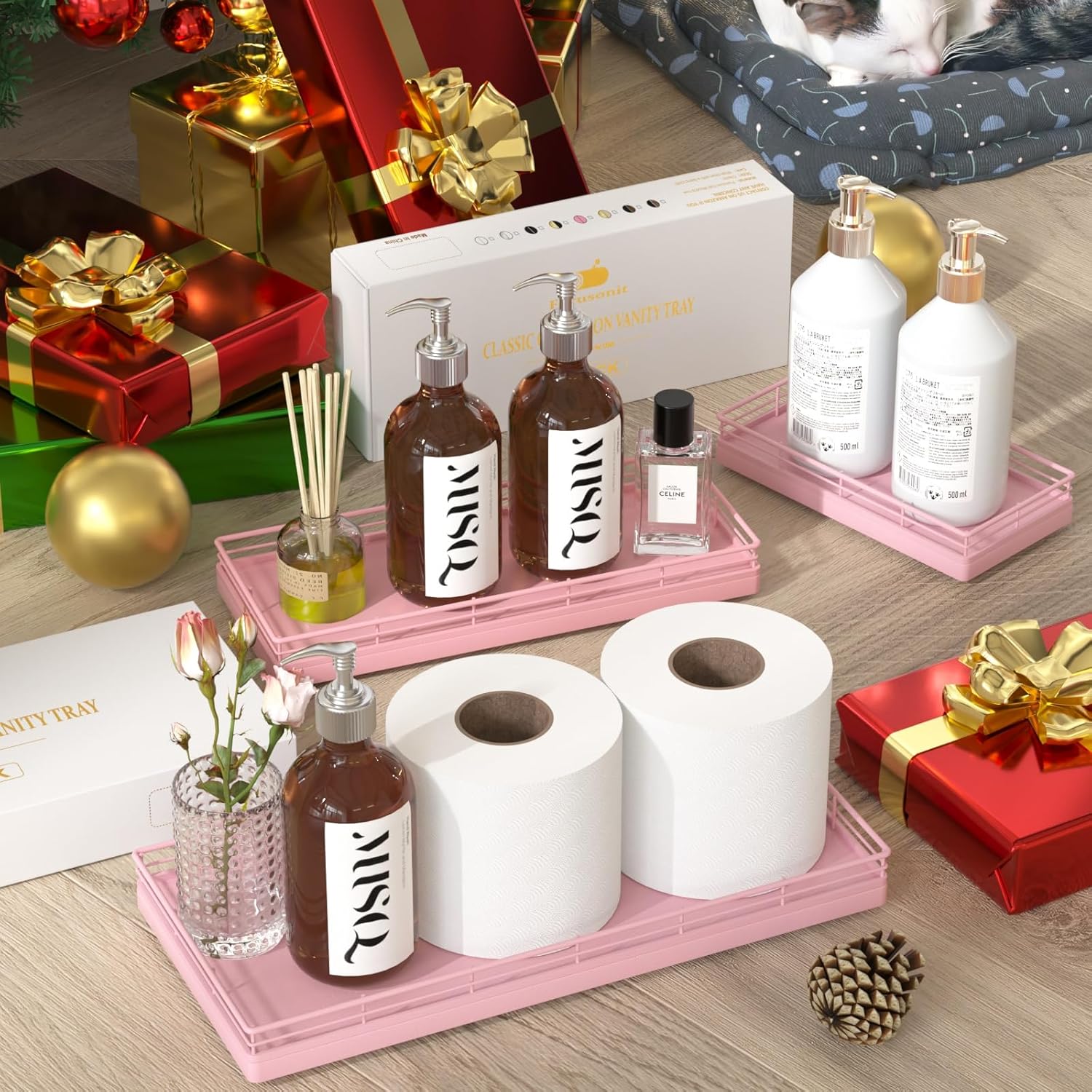 - Considerate Design: This bathroom trays for counter is ready to use without any installation required; Upgraded embedded welding design enhances stability and aesthetics; Raised edge prevent items from slipping; 4 non-slip pads on the bottom protect surfaces from scratches; Simplify your cleaning routine with just a quick wipe-down using a damp cloth, saving you time and hassle