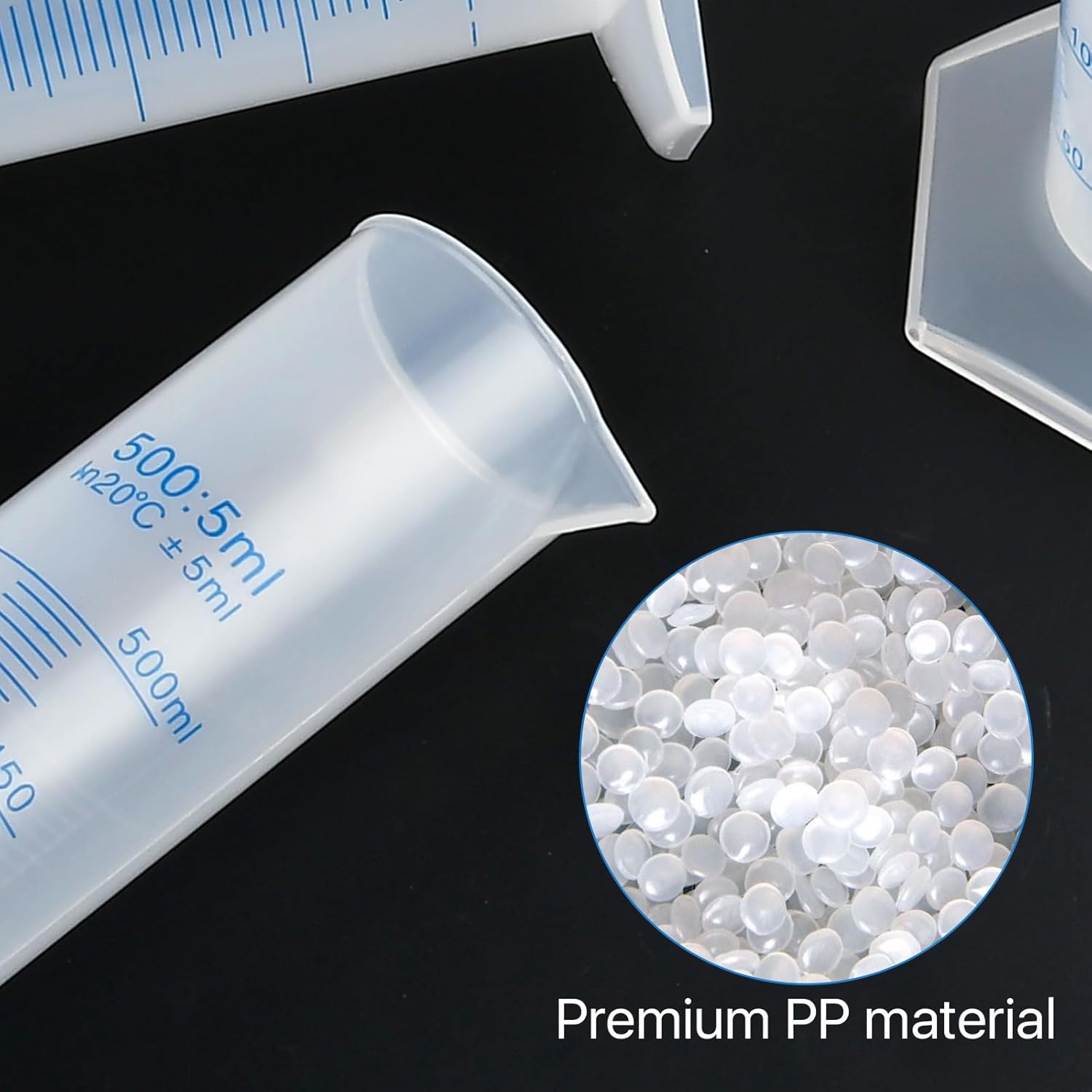 4 Packs 500ml Plastic Graduated Cylinder,Transparent Measuring Cylinder Set with Pour Spout, 2-Sided Making Plastic Lab Test Tube for Science Projects, Laboratory Supplies