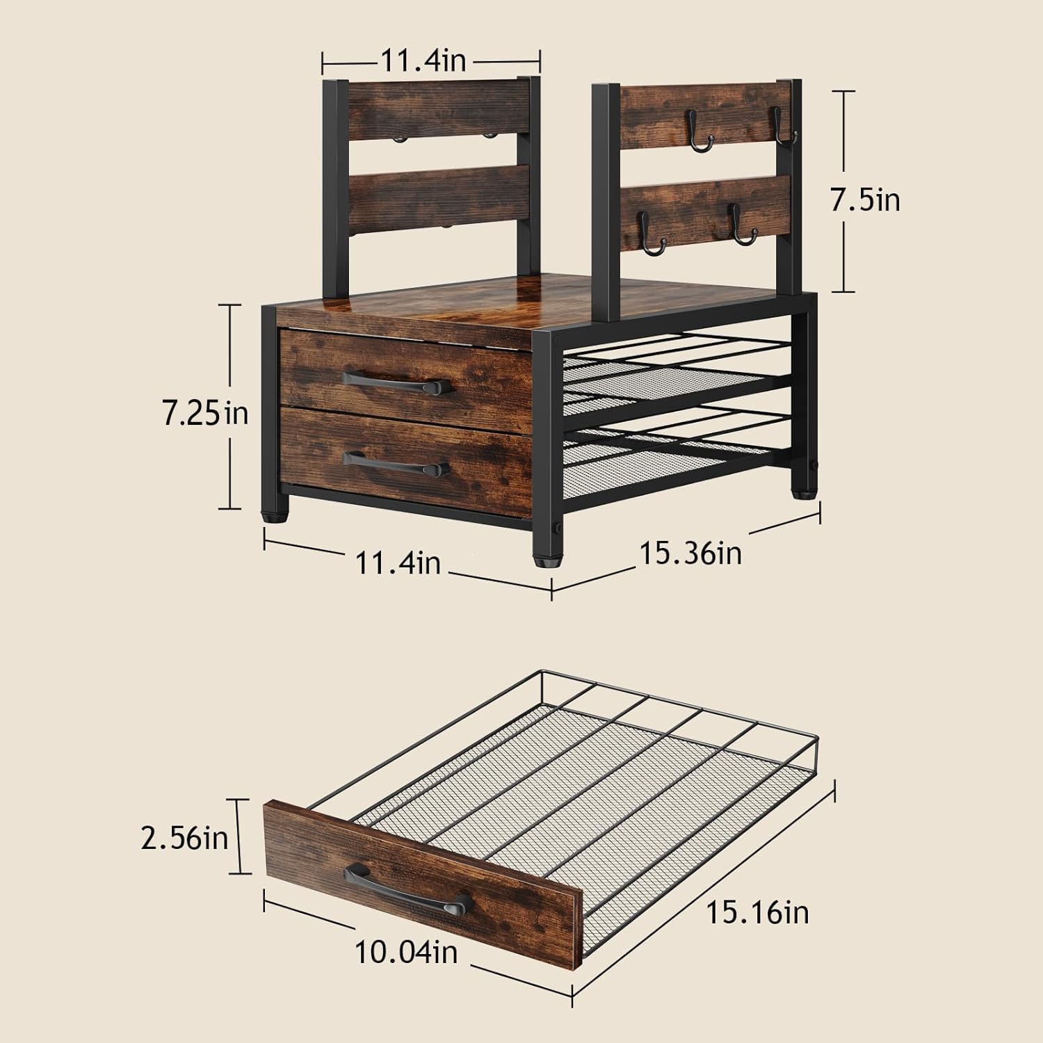 - 【All-Match Style】: The black frame and retro brown tabletop complement the coffee in your cup. The industrial design pairs effortlessly with different coffee machines. In offices, living rooms, kitchens, and cafes, the coffee pod drawer holder performs its role well.