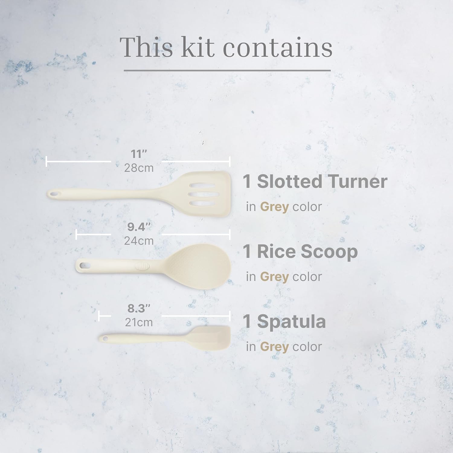 - 【THREE-IN-ONE SILICONE SET】This colorful 3-piece silicone utensil set includes a spatula, slotted turner, basting brush, and rice paddle — perfect for mixing, flipping, basting, and serving. Designed for daily use, it brings versatility and ease to a wide range of kitchen tasks.