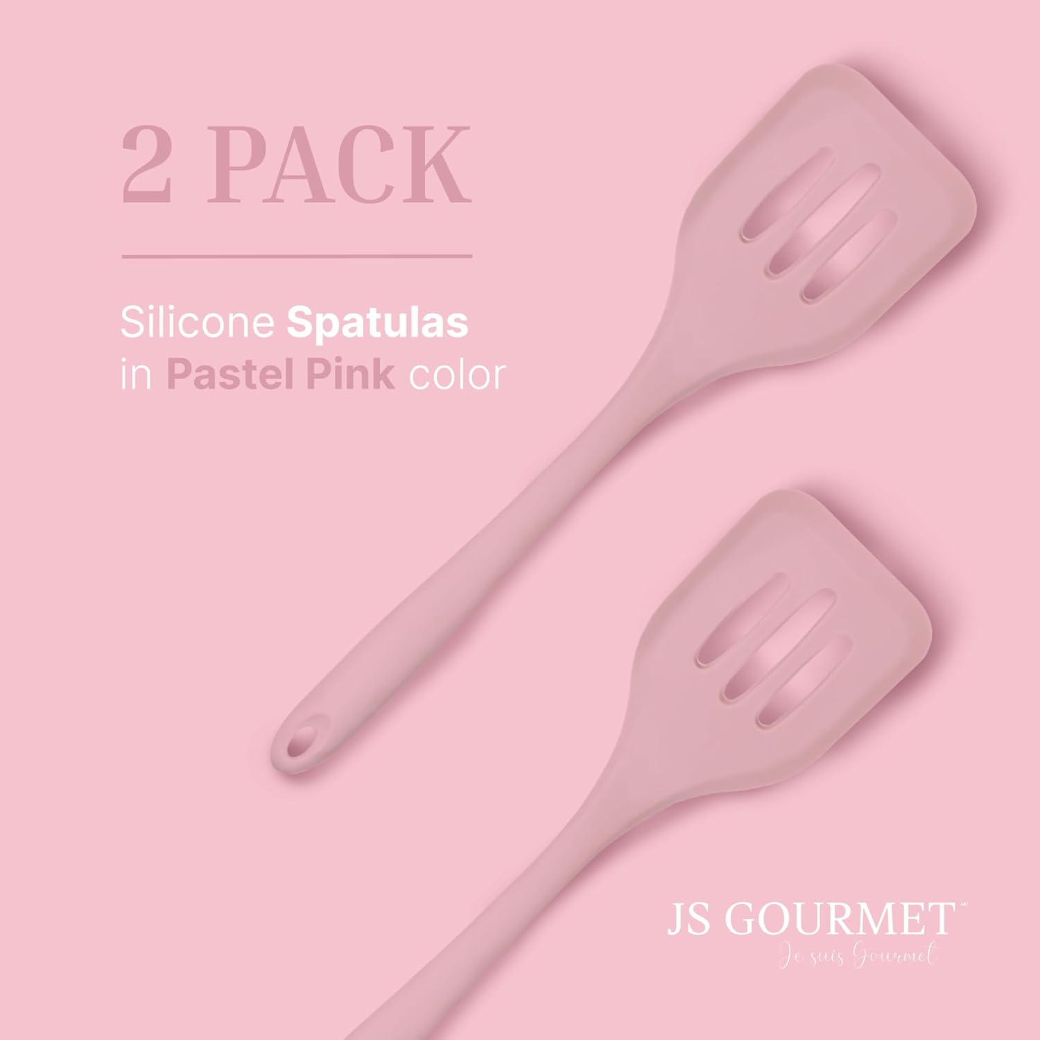 Silicone Slotted Turner Set – 2-Piece Set of Turner Spatulas for Eggs and Pancakes – Kitchen Tools & Accessories with Comfortable Handles, Heat-Resistant Utensils for Cooking and Baking – Pastel Pink