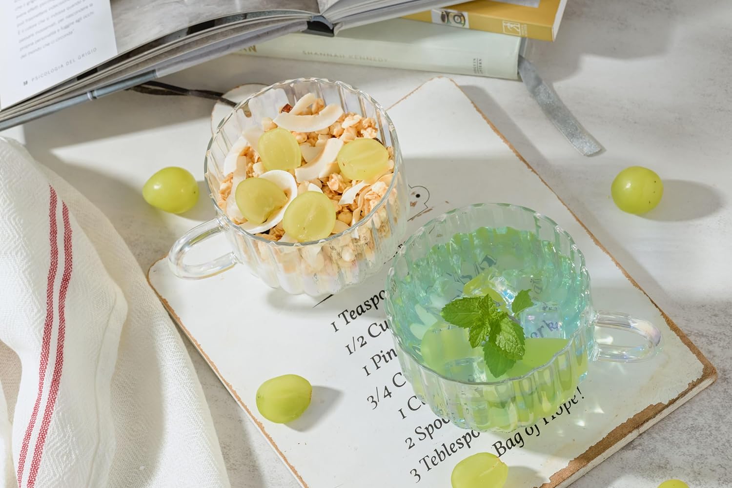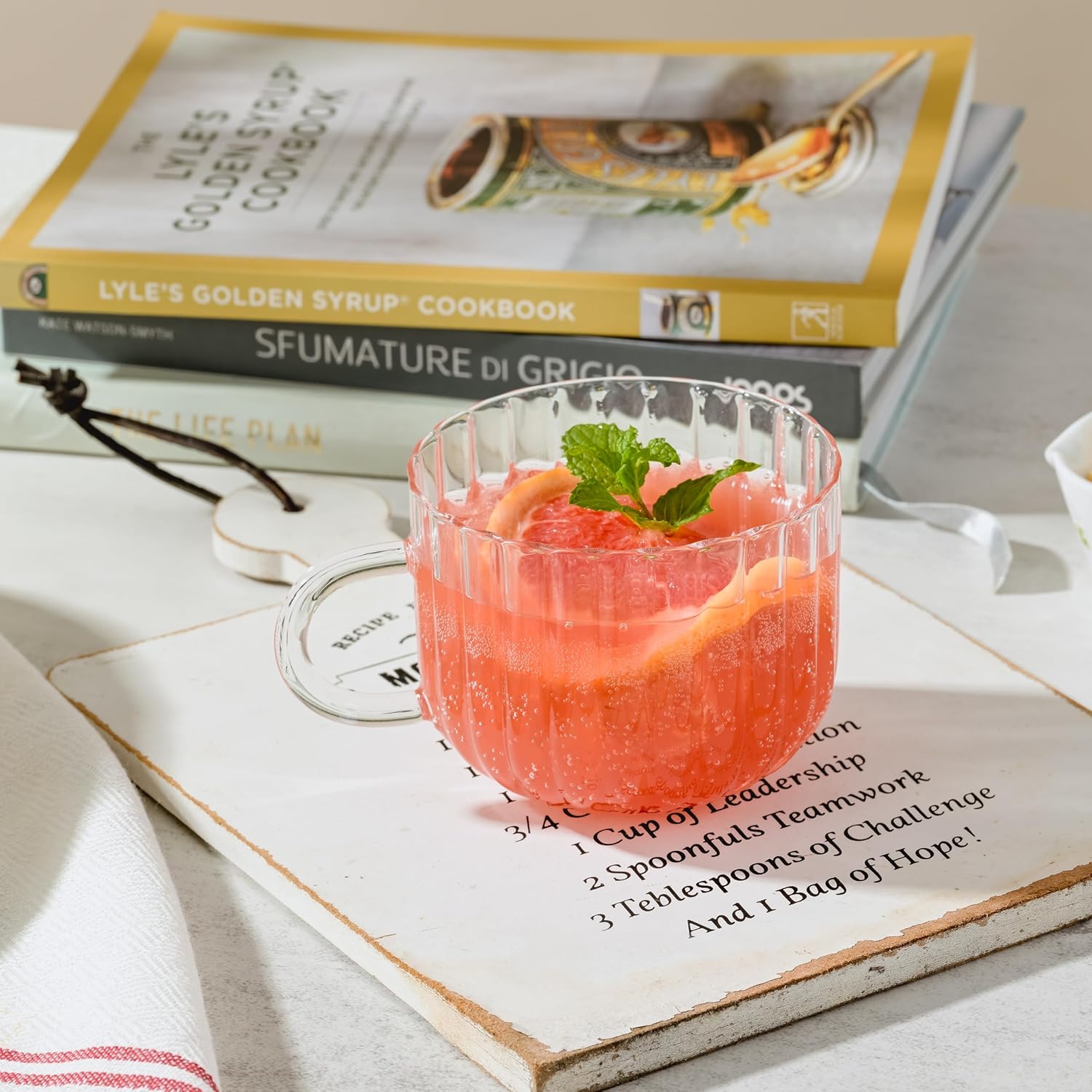 4pcs Vintage Iridescent Glass Coffee Mugs-Seamless Design, 15 Oz Ribbed Glass Mugs with Handle, Lead-Free Coffee Cups for Latte, Cereal, Yogurt, Hot/Cold Beverage, Coffee Lovers Gifts