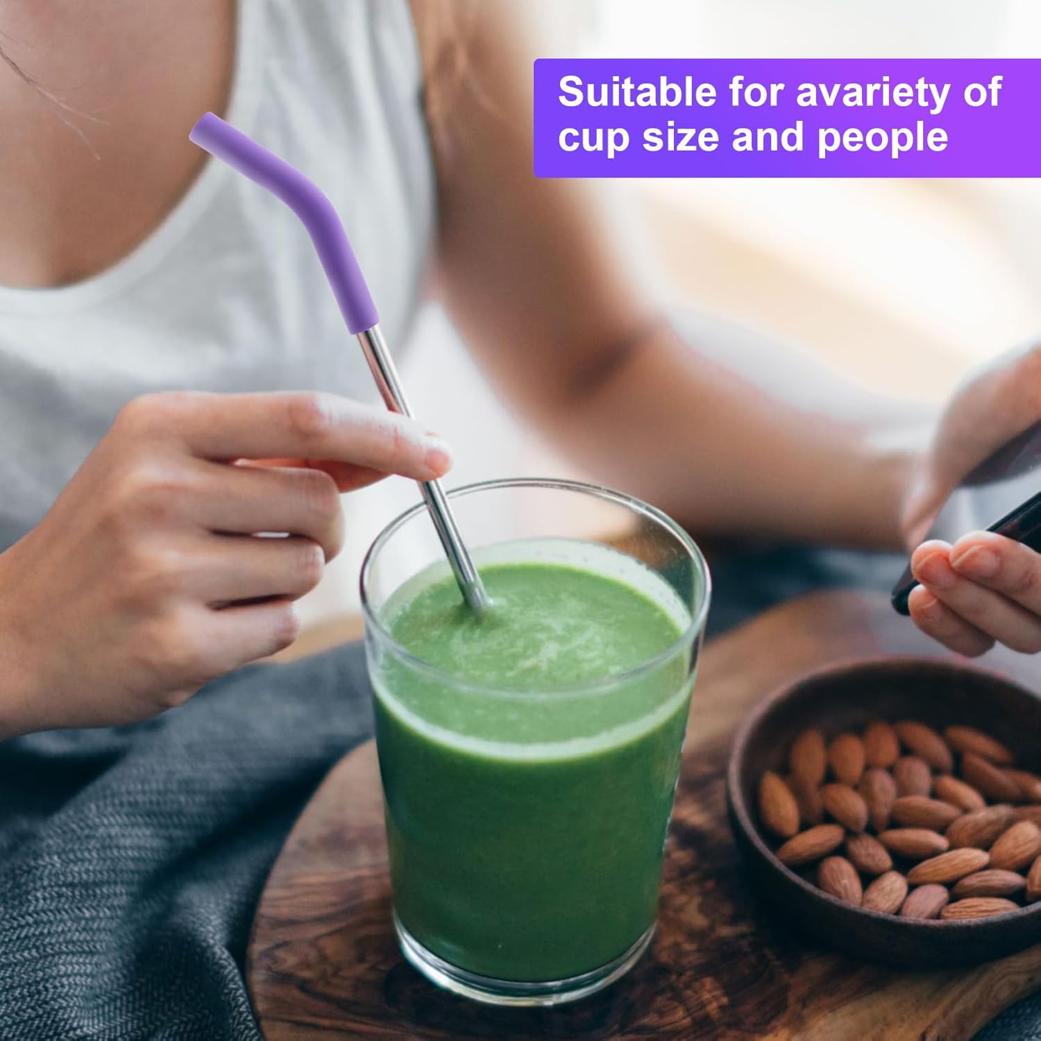 6Pcs Metal Straw Silicone Tips 5/16 inch Wide(8mm Outer Diameter) Food Grade Rubber Straw Covers Purple Flex Elbow Replacement Tip for Stainless Steel Metal Straws
