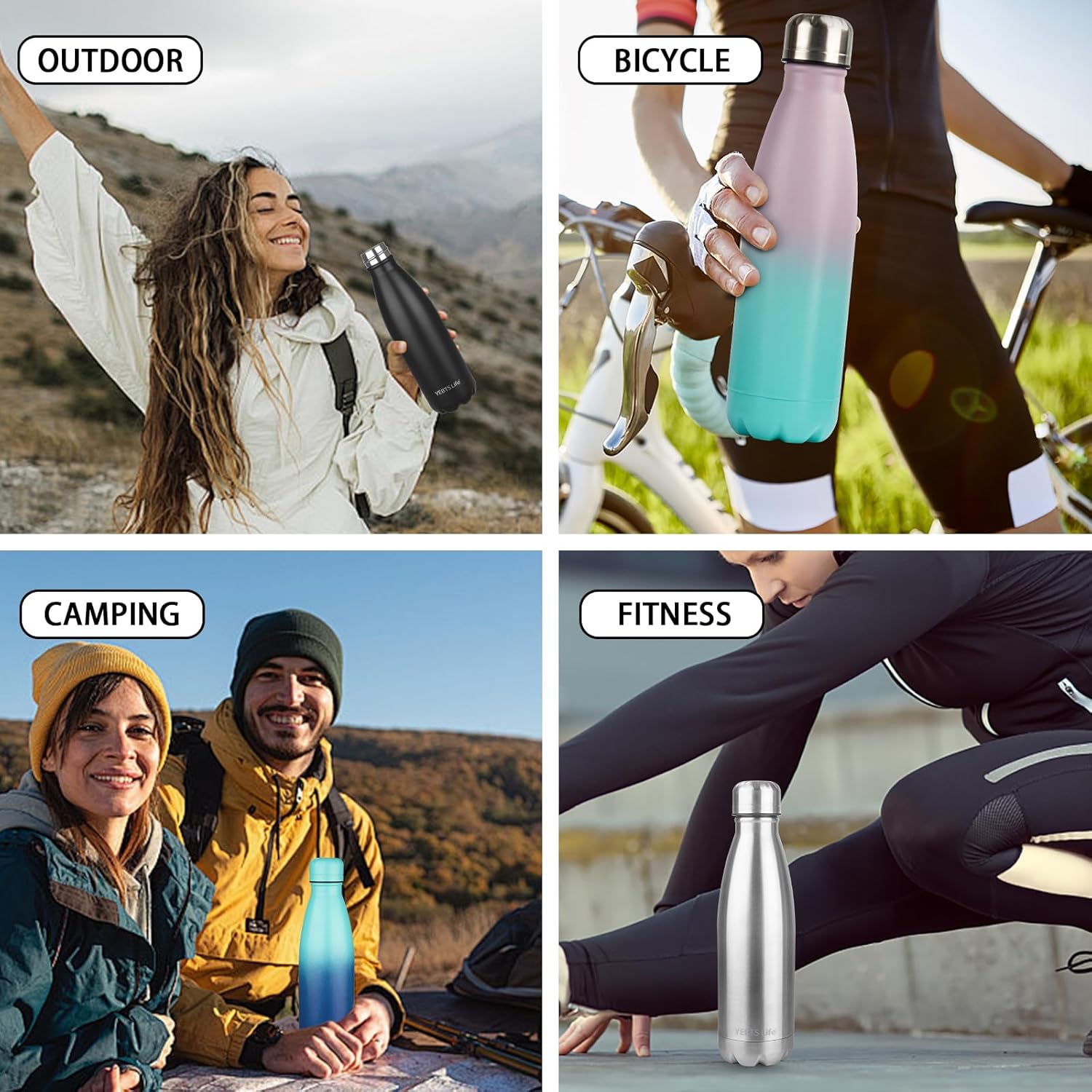 - COLORFUL & UNIQUE:Powder coating is the pinnacle of water bottle exteriors. Choose from a range of vibrant colors to match your personality and style. The Stainless Steel Metal water bottle is crafted with fashionable color powder coating, will not be scattered, discolored and difficult to scratch. Available in 9, 12,and 17-ounce sizes,making it easy to find the perfect size for your needs.