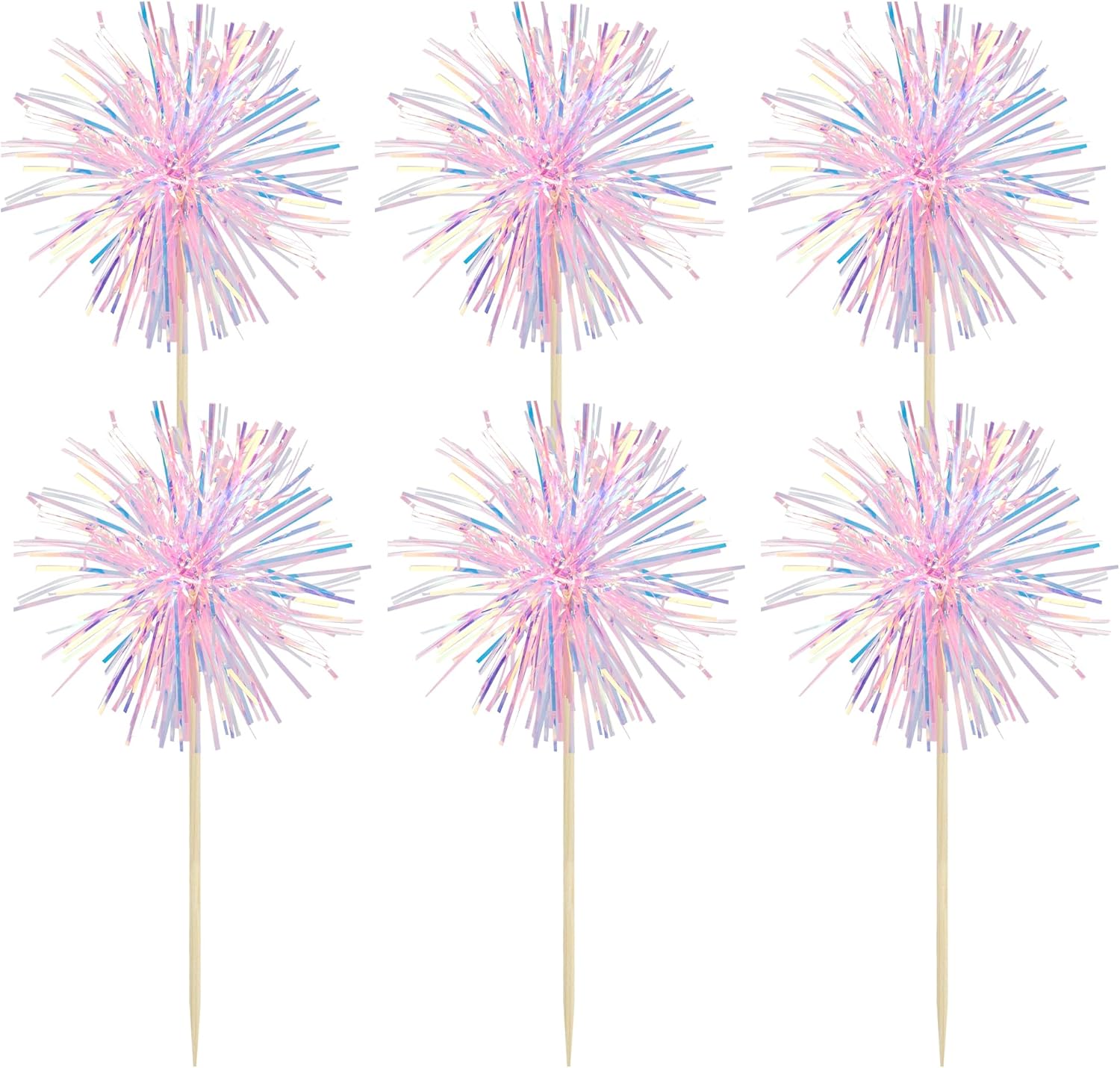 Gyufise 30Pcs Foil Firework Cupcake Toppers Sparkle Tinsel Cake Toppers Tinsel Drink Cake Decoration Cocktail Picks for Birthday Wedding Graduation Party Supplies Laser Pink