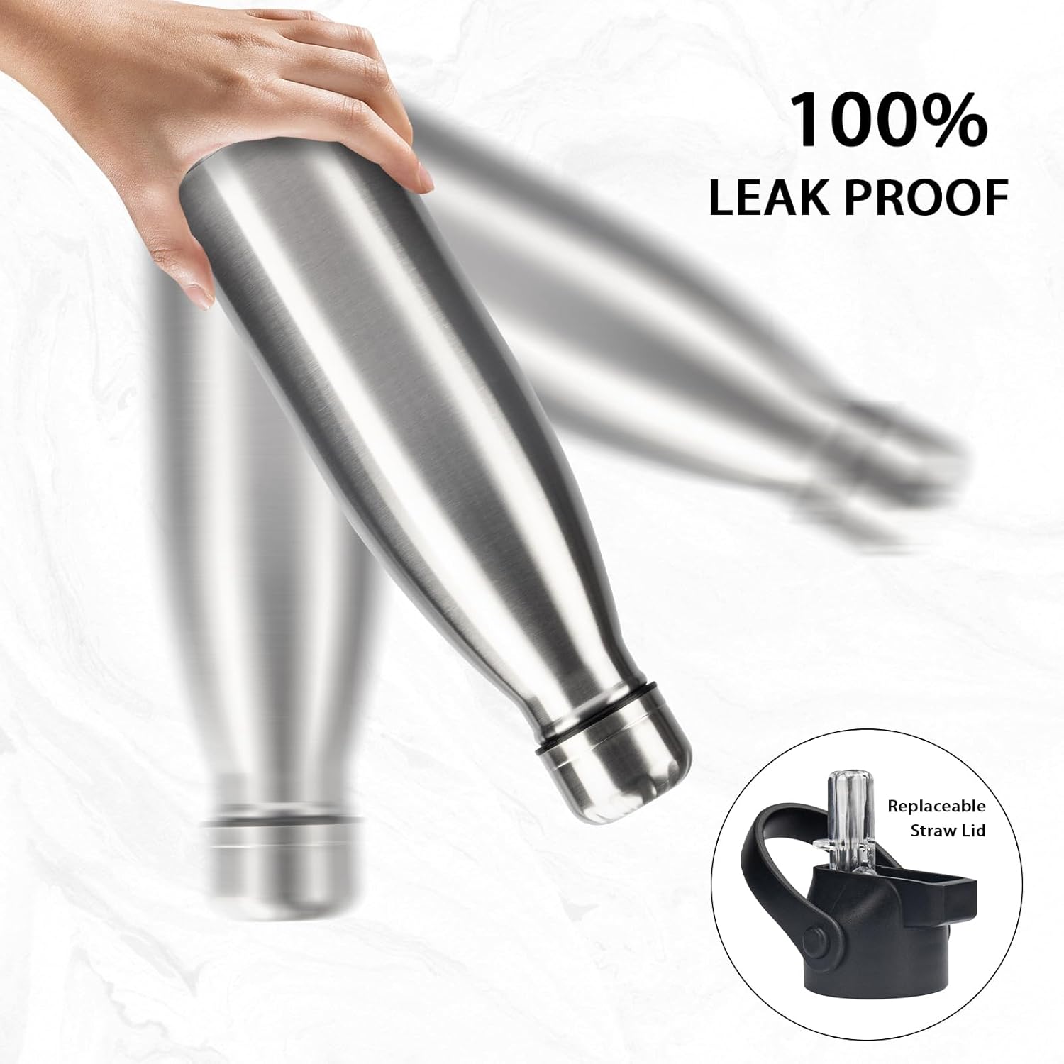 Insulated Water Bottle,17oz Stainless Steel Water Bottles with straw lid, Metal Sports Water Bottles for Boys,Girls, Double Wall Vacuum BPA-Free Flask for School, Sports(SLIVER)