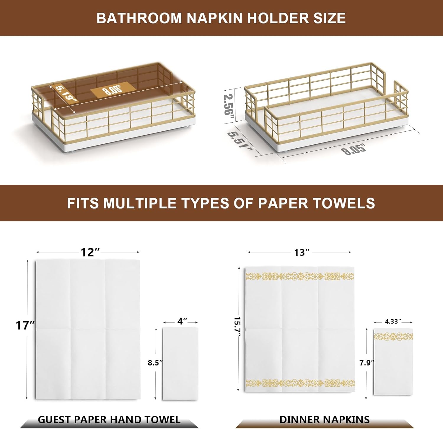 - Quite Versatile: This guest towel holder hold paper towels in the guest bathroom for hand drying; hold paper bath towels for your powder room, easy to retrieve towel when needed; It can also be used as a lunch napkin holder, looking very nice on the dining table