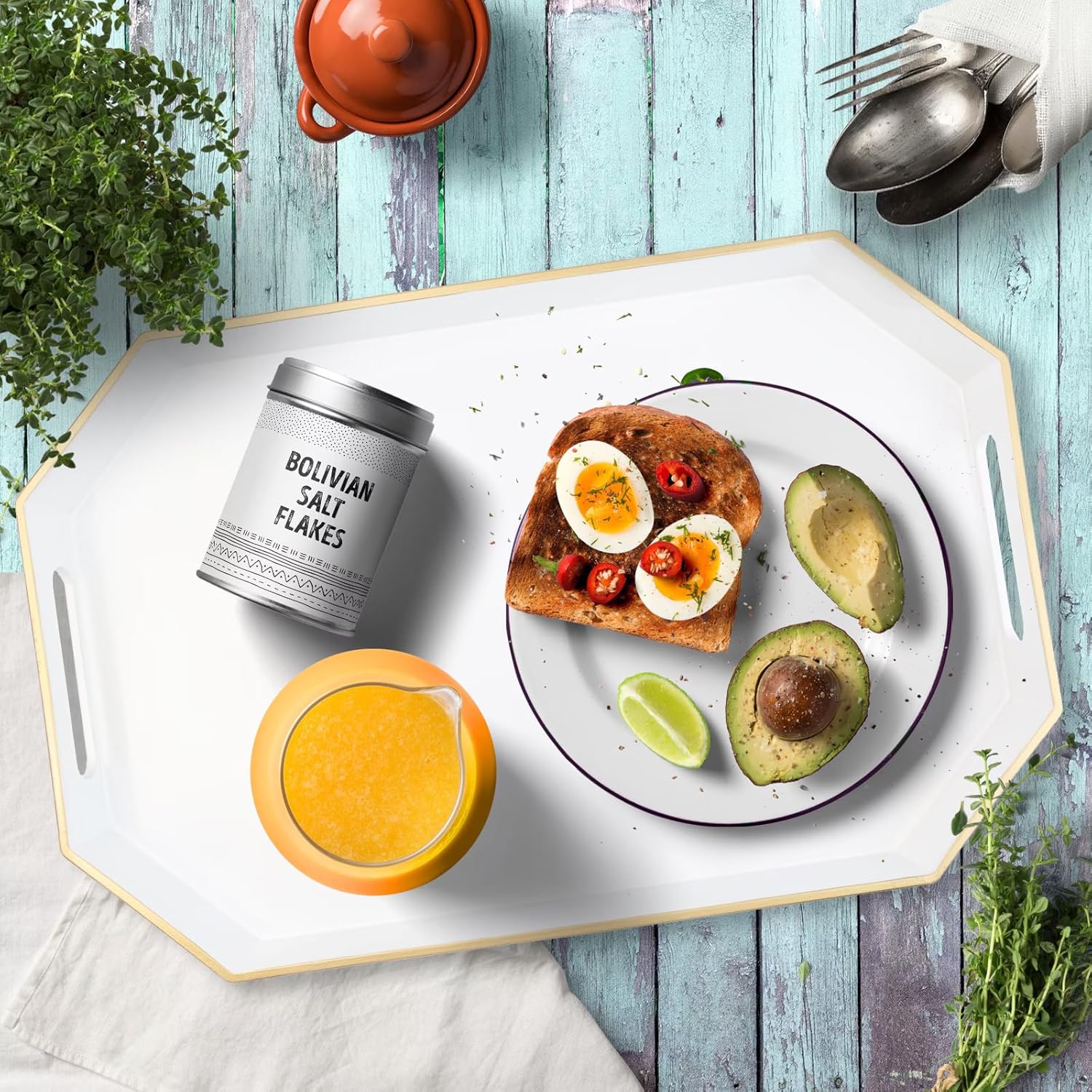 White Decorative Tray with Handles, Octagon Versatile Serving Tray for Coffee Table, Ottoman, Ideal for Serving, Displaying, Organizing