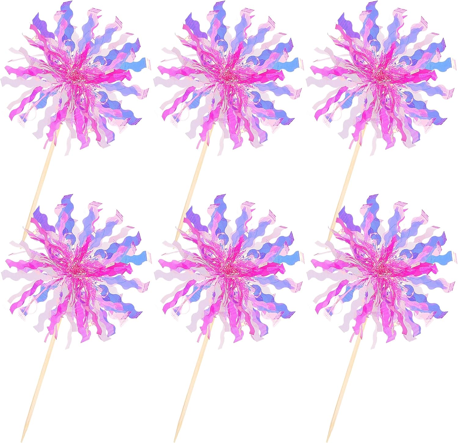 - Upgrade Quality ! Made of high quality aluminium-foil paper and and 100% food grade bamboo stick,not easy to deform and fade,smooth edges without burrs.they will be shine in the light, easily enhance the party vibes and draw attention of people.