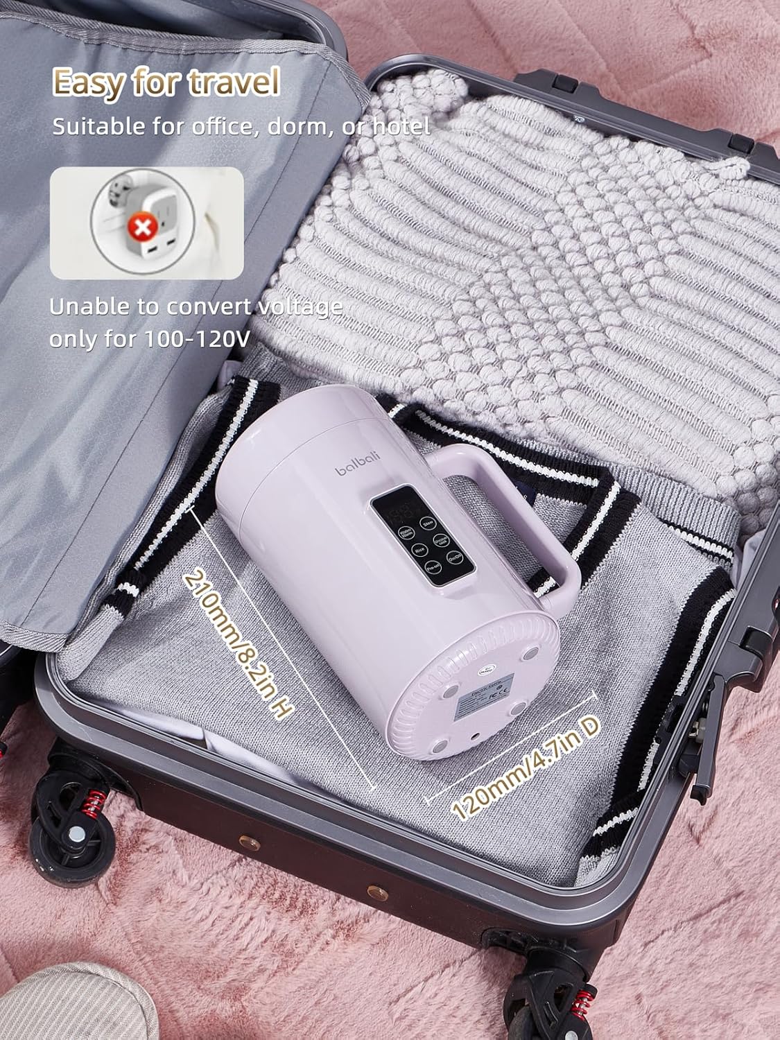 balbali Portable Electric Pot for Cooking Dorm Room - 28oz Non-stick Travel Electric Kettle, Mini Hot Pot with Temperature and Time Control - Self Heating Soup/Rice/Ramen Cooker/Warmer Purple