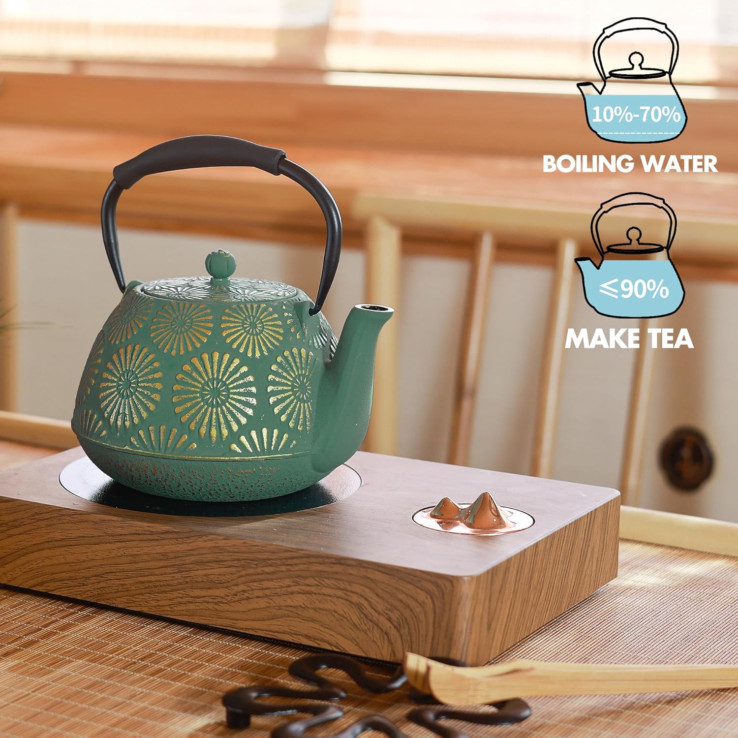 - Versatile Use: This 40-ounce Japanese teapot is suitable for boiling water, steeping tea, and making coffee, serving 3-4 people with 3-5 cups. It is compatible with induction cookers, electric stoves, natural gas stovetops, as well as firewood stoves and gas stoves for outdoor camping, with the use of a low flame recommended.