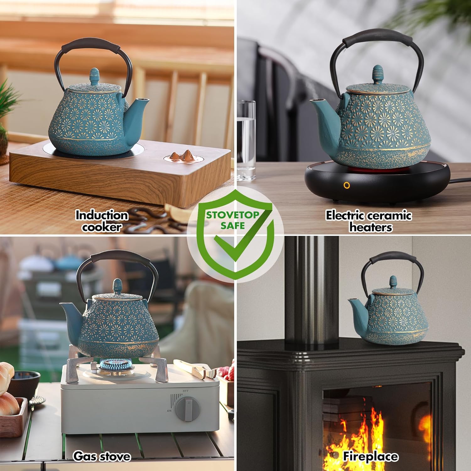 - Versatile Use: This 32oz Japanese teapot is suitable for boiling water, steeping tea, and making coffee, serving 1-2 people with 2-4 cups. It is compatible with induction cookers, electric stoves, natural gas stovetops, as well as firewood stoves and gas stoves for outdoor camping, with the use of a low flame recommended.