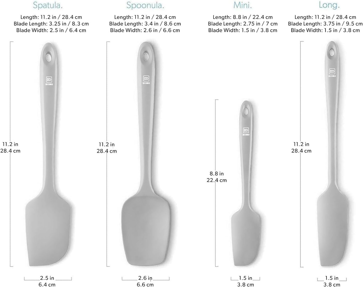 - ONLY THE BEST – Each piece in the DI ORO 4-Piece Seamless Silicone Spatula Set is made with food grade, BPA Free, and LFGB Certified Silicone. Built to withstand the heat, each spatula is heat-resistant up to 600°F, which means you will never melt your favorite spatula.