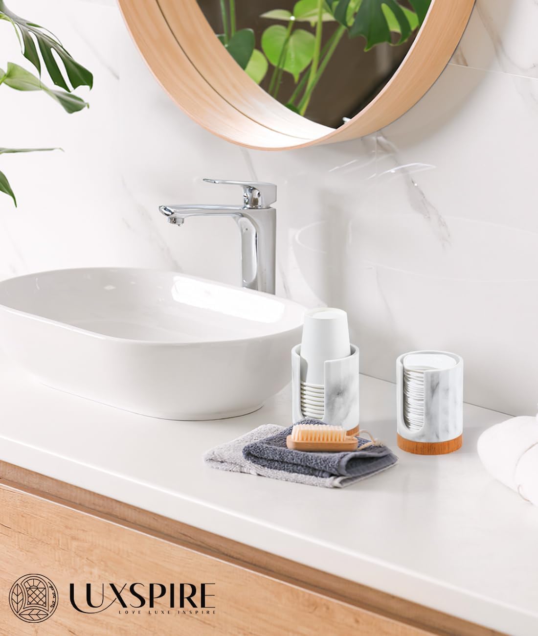 - Premium Material: Luxspire bathroom cup dispenser is meticulously crafted from natural gravel and resin, which is sturdy, waterproof, perfect for the guest room and bathroom. You can wipe the bathroom cup dispenser with a damp cloth or wash it with water below 104℉. (*Product only includes cup dispenser, not dixie cup)