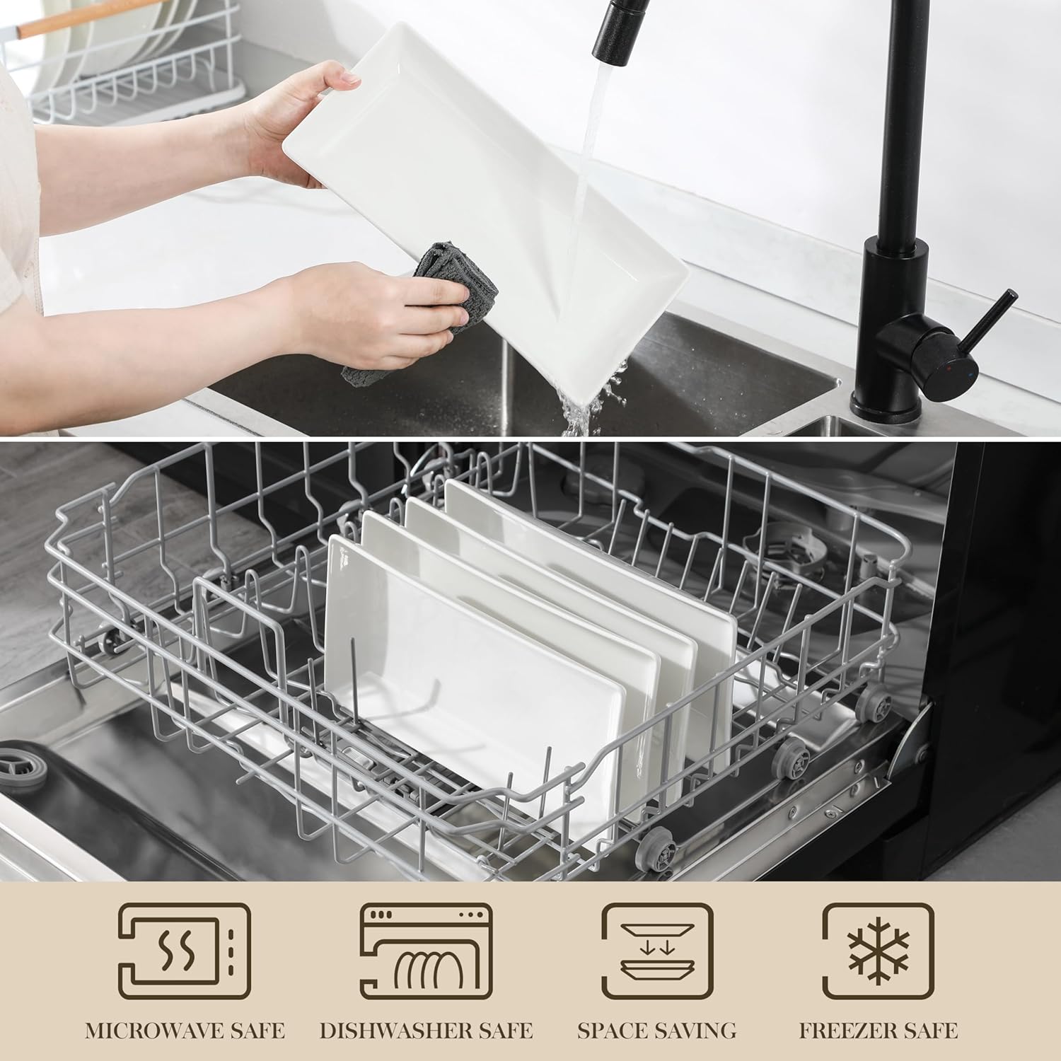 - Generous Size & Elegant Presentation - MALACASA serving platters set of 4, measure at 12 * 6 *1.4 Inch, provide ample space to showcase your culinary creations. The sleek, white rectangular platters boast a timeless design that seamlessly fits into any dining setting, making every dish looks gourmet.