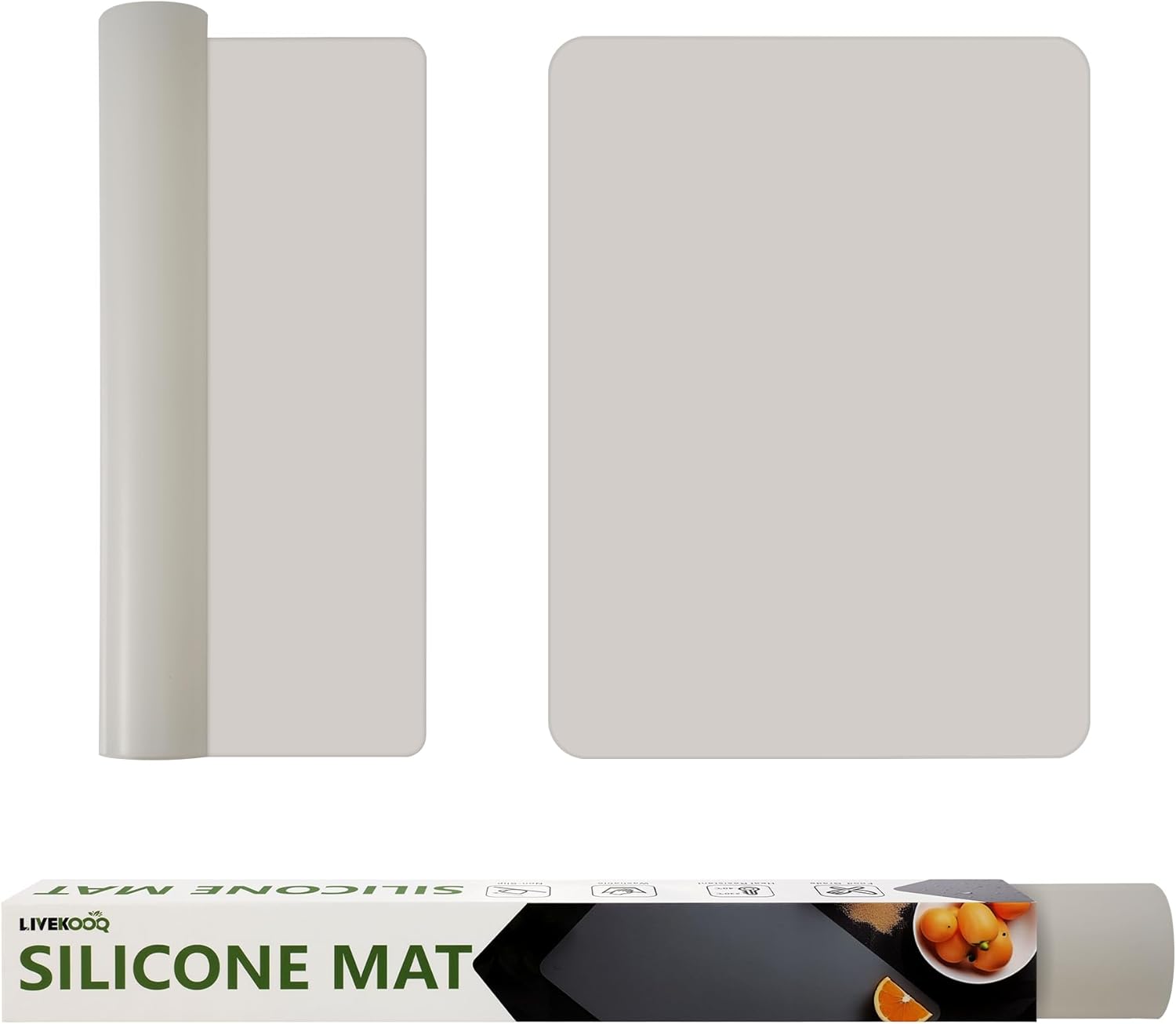 Silicone Mat for Kitchen Counter, Silicone Mat Trimable to Size (Light Grey, 15.7×11.8inch-2pcs), BPA-Free Silicone Placemat, Heat-Resistant NonSlip Table Mat for Air Fryer, Countertop Protector Mat