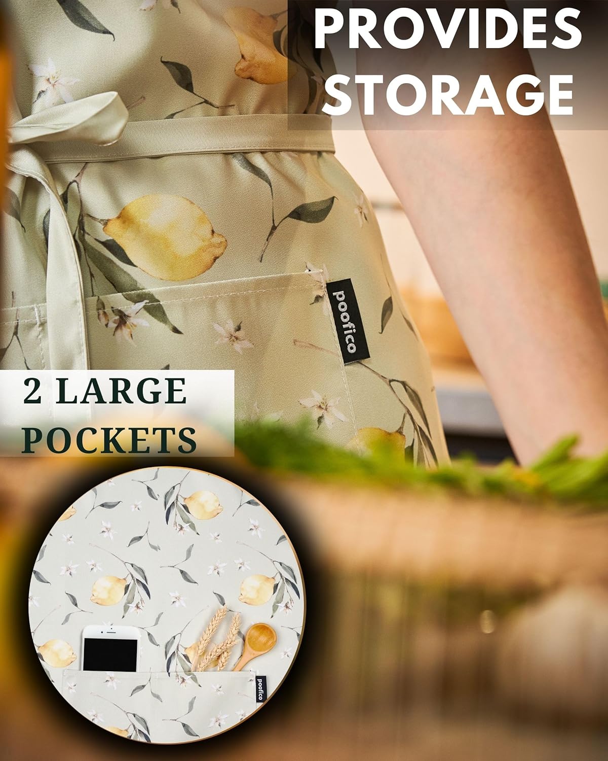 - ✔️FLORAL DESIGN: A stylish Lemon Water Resistant Apron for women with pockets.