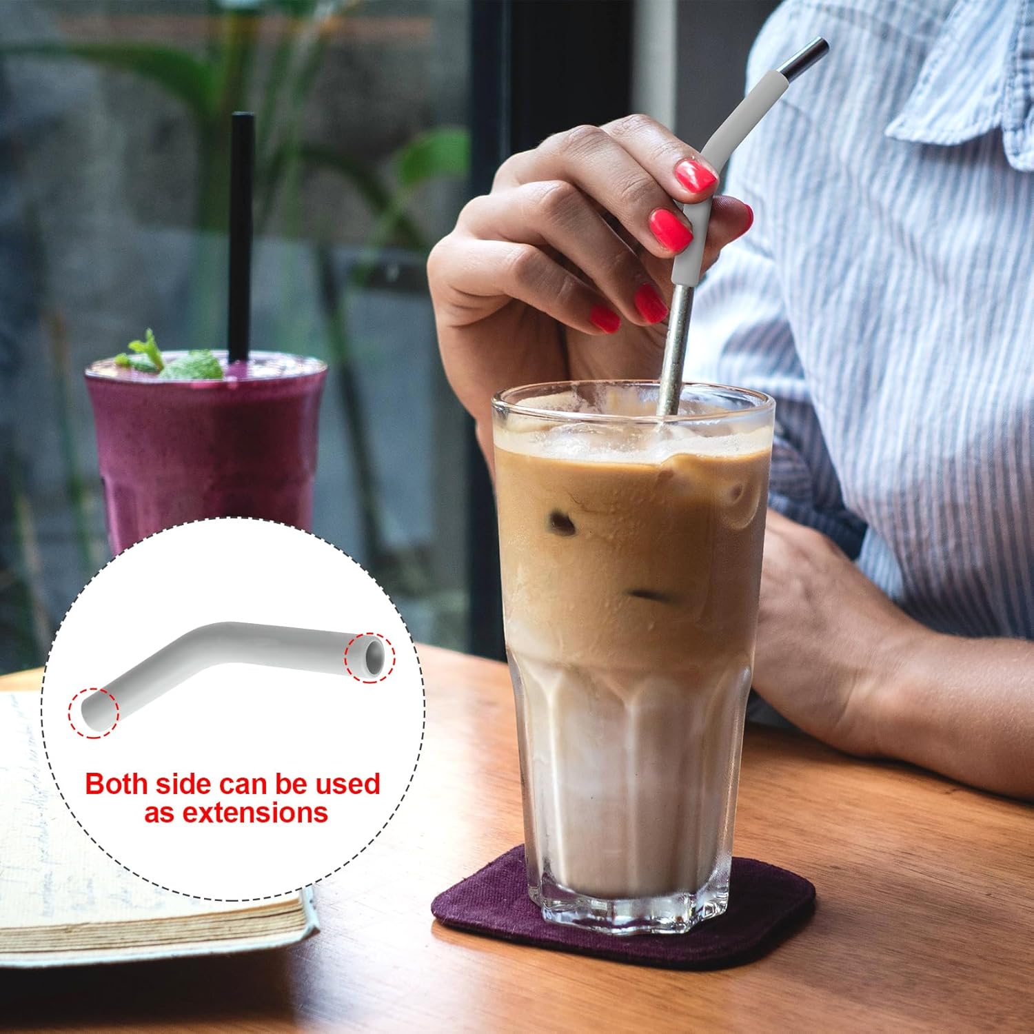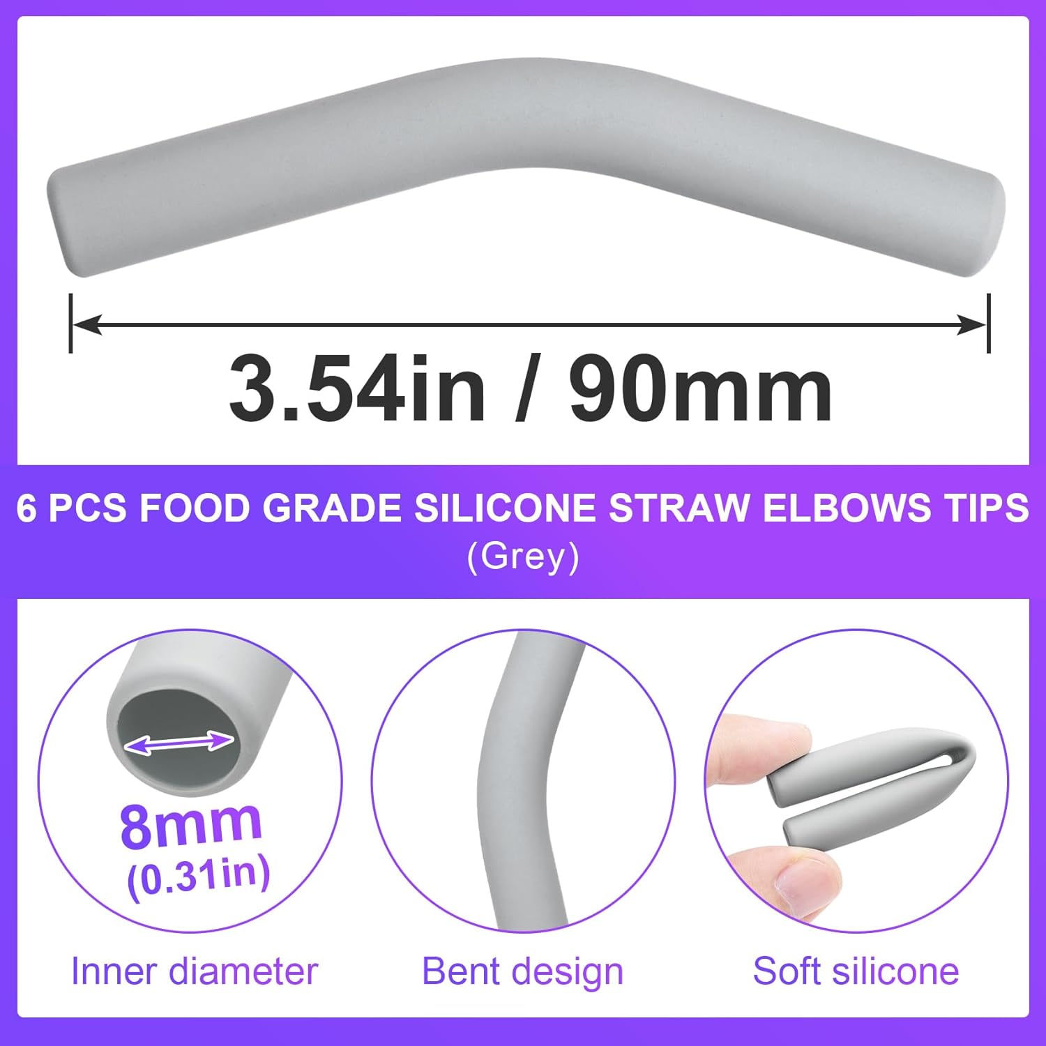 6Pcs Metal Straw Silicone Tips 5/16 IN Wide(8mm Outer Diameter) Food Grade Rubber Straw Covers Gray Flex Elbow Straw Replacement Tip for Stainless Steel Metal Straws