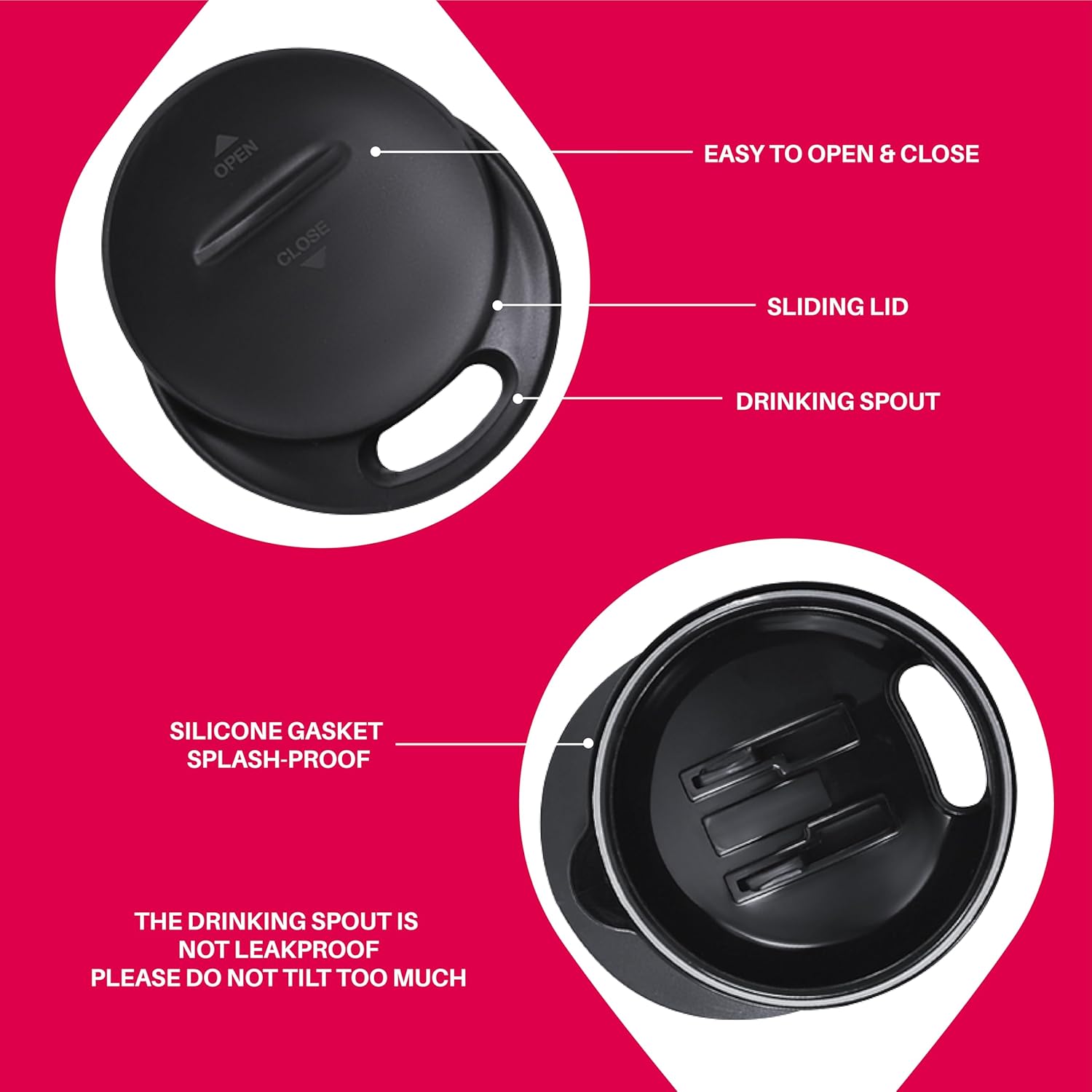 - Special Feature : Condensation Resistant, Double Wall, Sliding Lid, Spill Proof, Vacuum Insulated