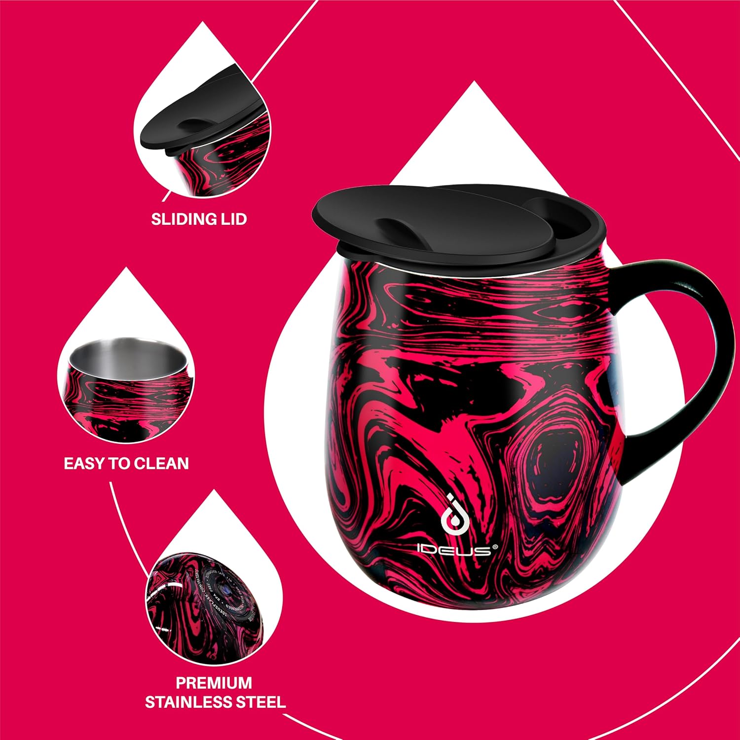 Ideus 16 oz (470 ml) Insulated Coffee Mug with Handle and Lid, Double Wall Stainless Steel Vacuum Thermal Coffee Mug, Travel Coffee Cup Thermal Cup for Home and Office (Red Zebra)