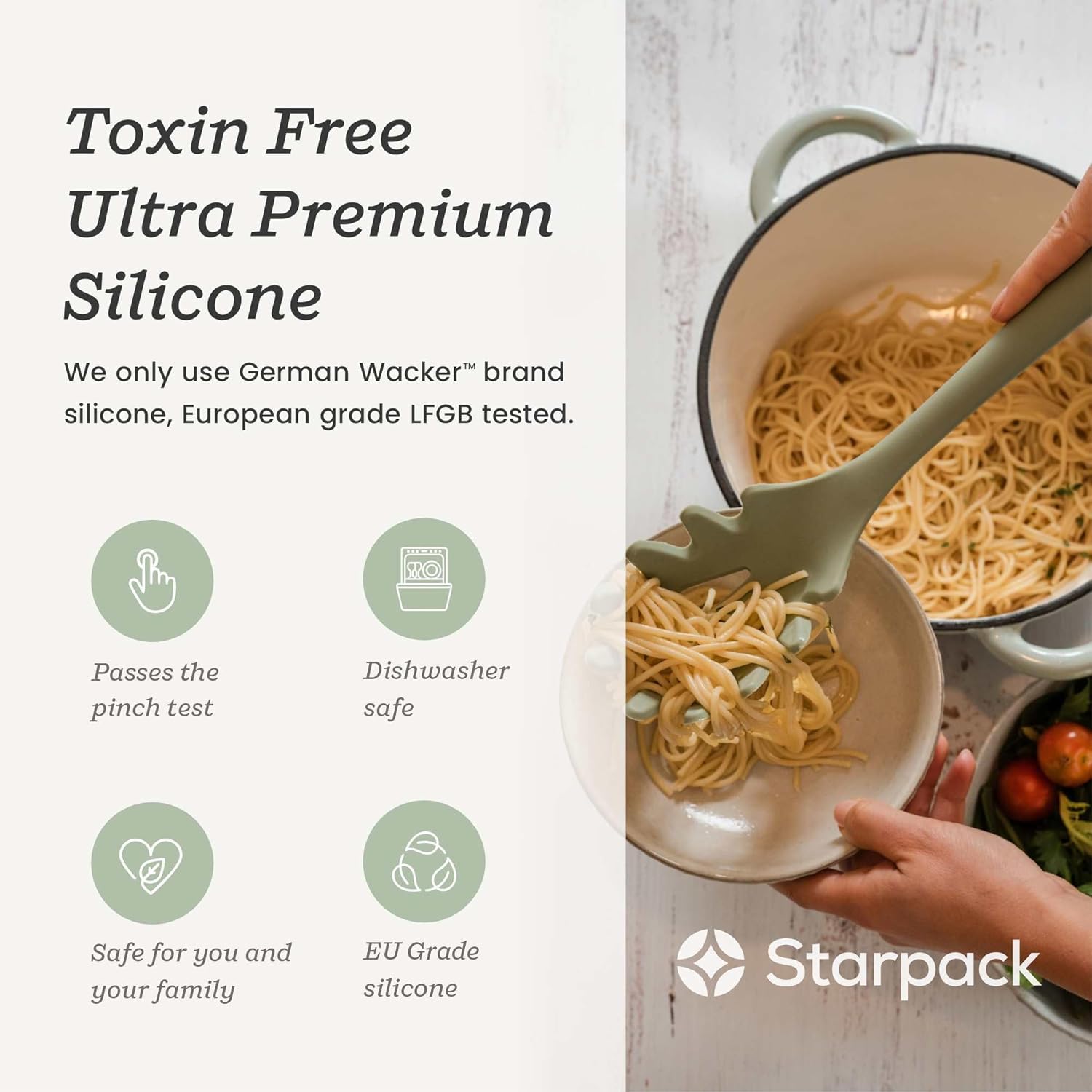 - Safe and Smart Cooking: Our utensils feature heavy gauge stainless steel inside, with our ultra-premium LFBG European grade German Wacker silicone outer. Silicone that passes the Pinch Test, super durable, ergonomic design - opt for the best!