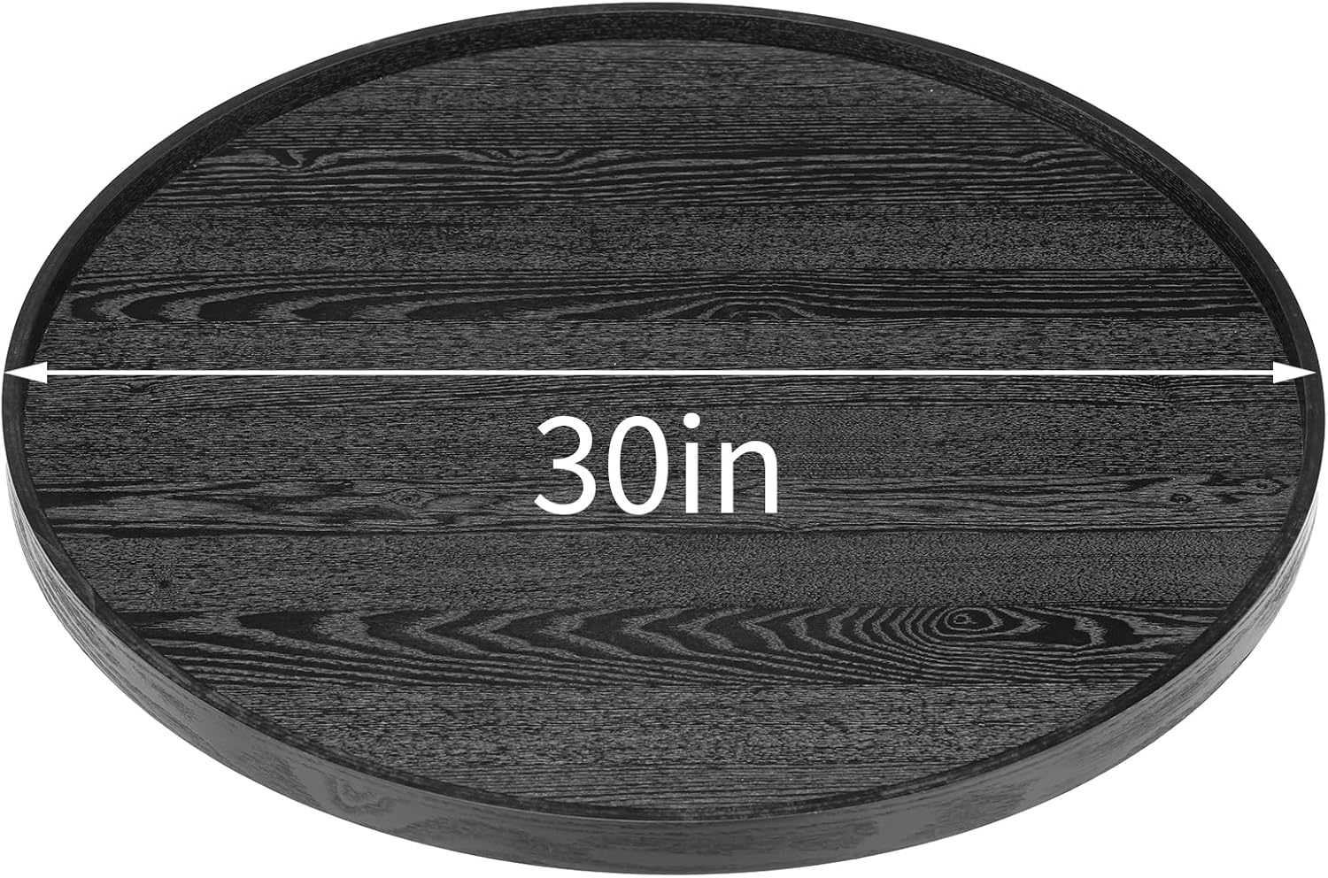 30 inch Round Solid Wood Serving Tray Extra Large Tea Coffee Snack Food Meals Serving Plate Non-Slip Kitchen Party Bar Server Ottoman Tray Breakfast Tray with Raised Edges Black