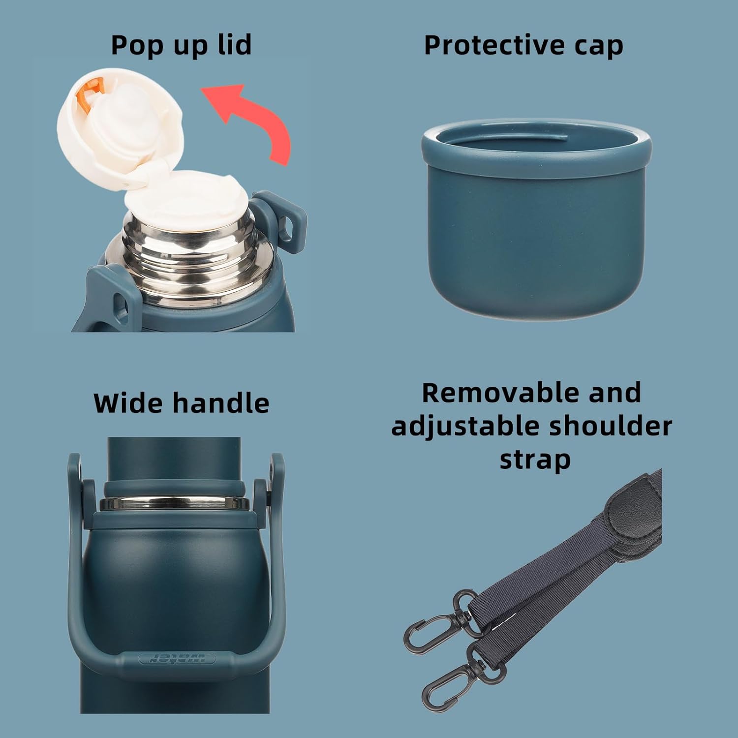 - BPA-Free Water Bottle with Carry Handle and Shoulder Strap: Has a silicone spout and a shoulder strap, all can removable for easy cleaning, comfortable handle makes it easy to carry, also making it an ideal choice for outdoor activities or everyday use