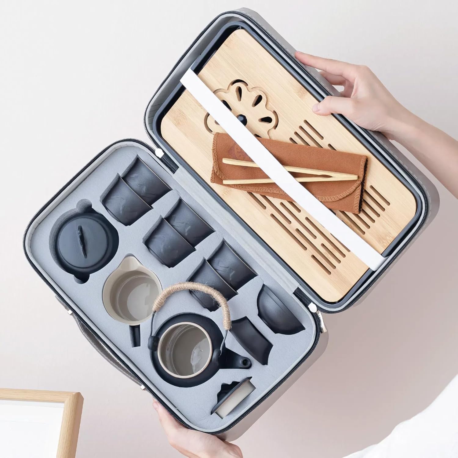 - 【Ideal Tea Gifts Set】This ceramic gongfu tea set serves as an exquisite gift for tea lovers. Perfect for birthdays, anniversaries, Mother’s Day, or corporate gifting, its compact case suits travel, camping, and office use. The stylish presentation box enhances its appeal for weddings, housewarmings, or holiday gifts
