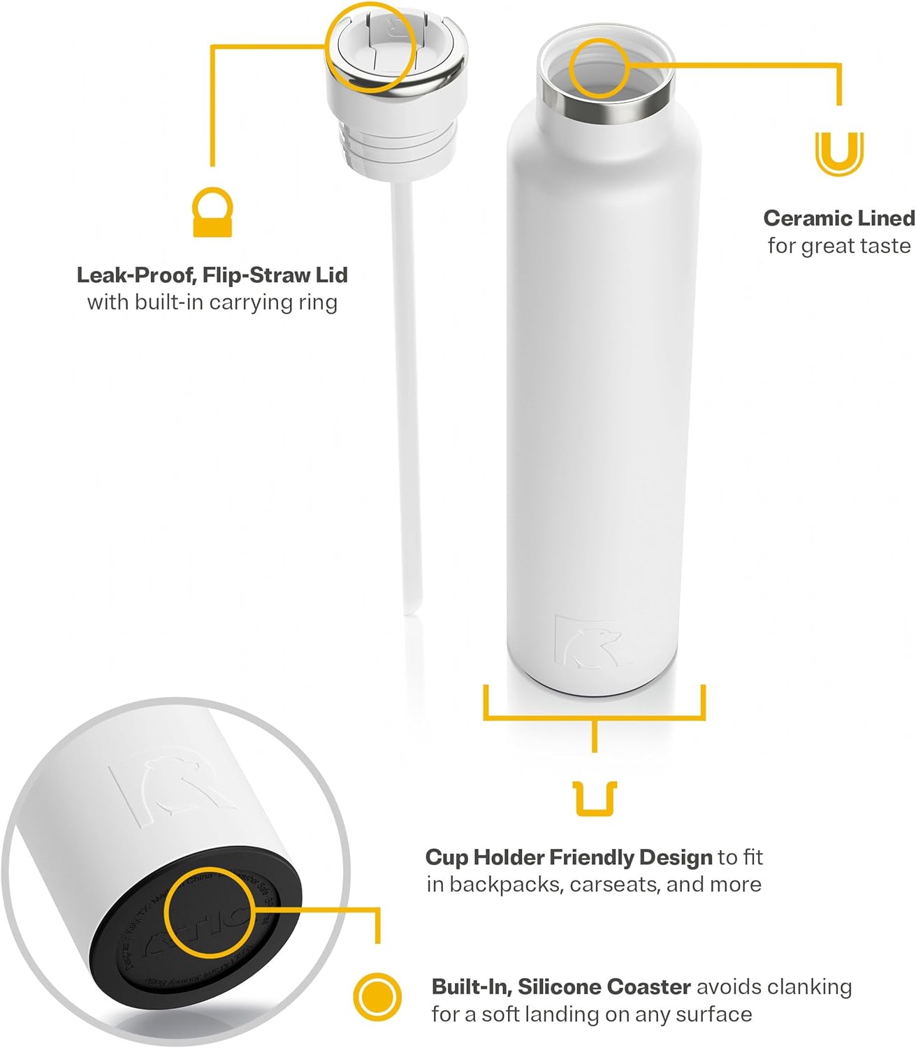 RTIC 26oz Journey Bottle Metal Stainless Steel Vacuum Insulated, BPA Free, Reusable, for Water, Hot and Cold Drinks, Travel, Sports, Camping, White
