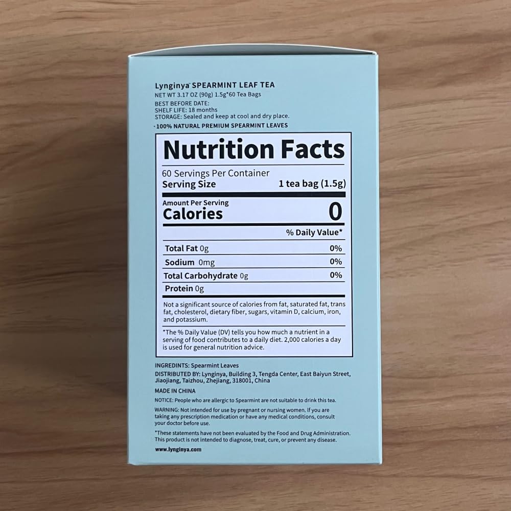 Lynginya Spearmint Tea, 60 Tea Bags - Premium Spearmint Leaves - Natural Herbal Tea - Refreshing & Minty - No Sugar & No Caffeine