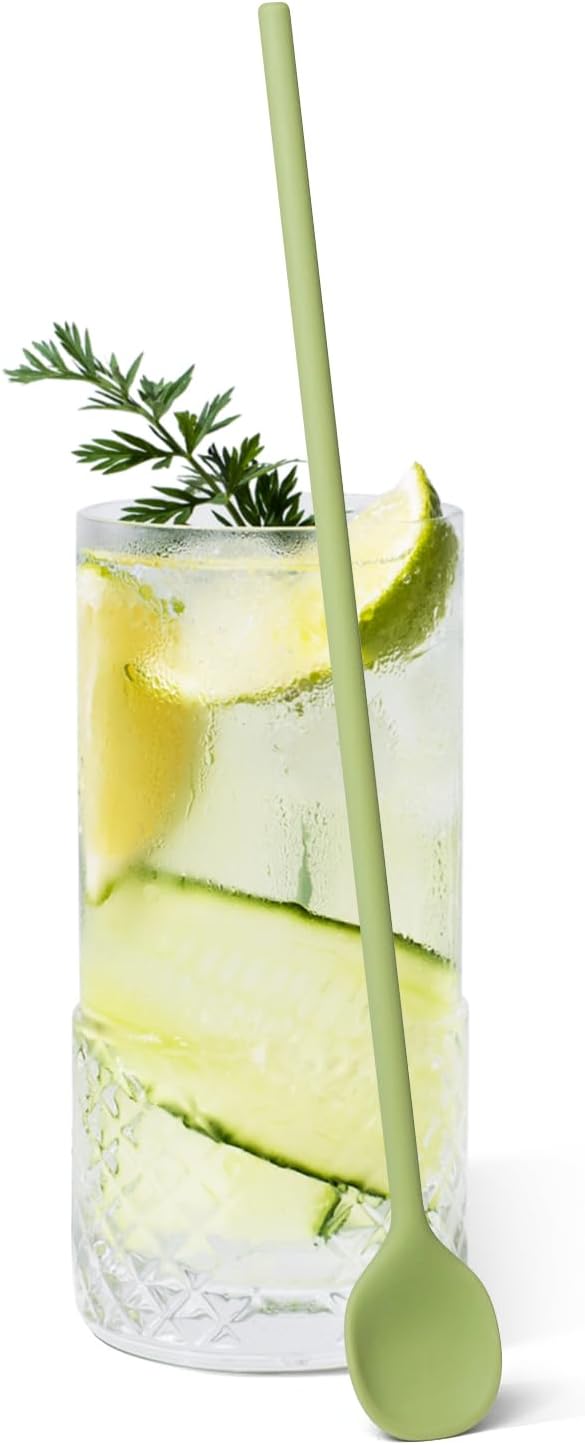 carrotez 9.9" Silicone coffee stirrer, Long Coffee Spoon, Reusable Iced Tea Spoon, Multipurpose Beverage Stirring Spoon - Green