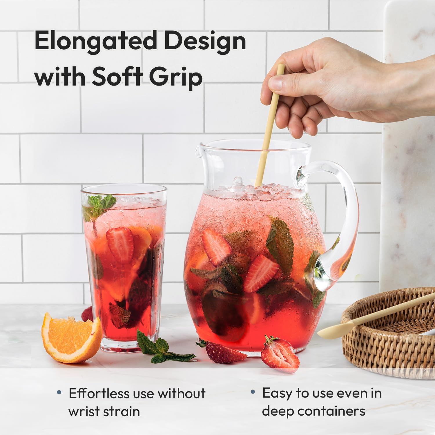 - Practical Design: Our stirrer is crafted for both comfort and functionality. A soft grip and lightweight construction allow effortless use without wrist strain during drink or food preparation. Its toned-down pastel colors blend seamlessly into any kitchen decor.