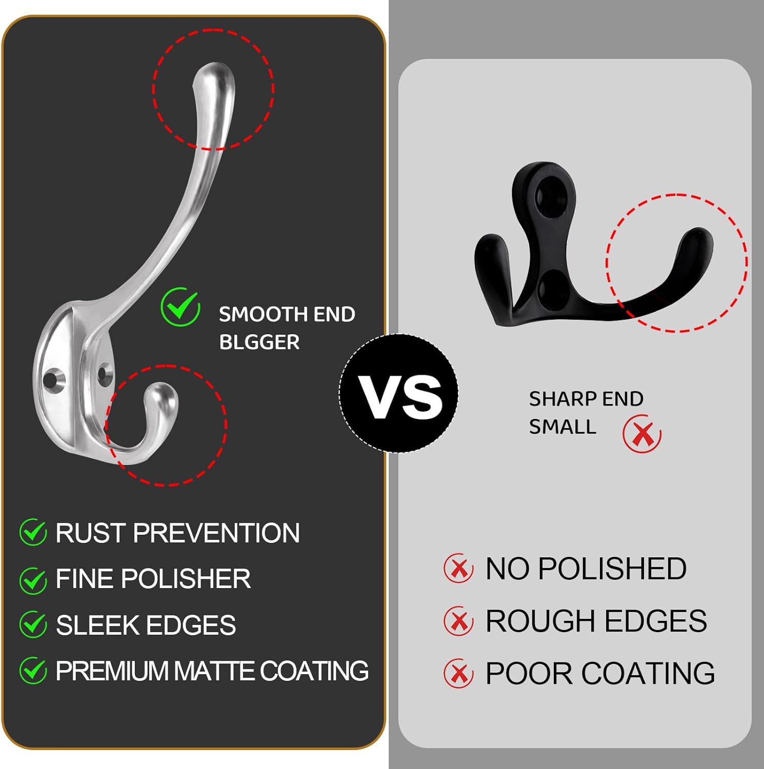 - 【HIGH LOAD-BEARING CAPACITY】 The coat hooks for wall is made of sturdy and durable zinc alloy material, ensuring its stable structure and high high gravity Polished and plated treatment not only enhances the appearance texture of the coat hook, but also strengthens its wear-resistant, corrosion-resistant and rust-resistant properties to ensure its durability.