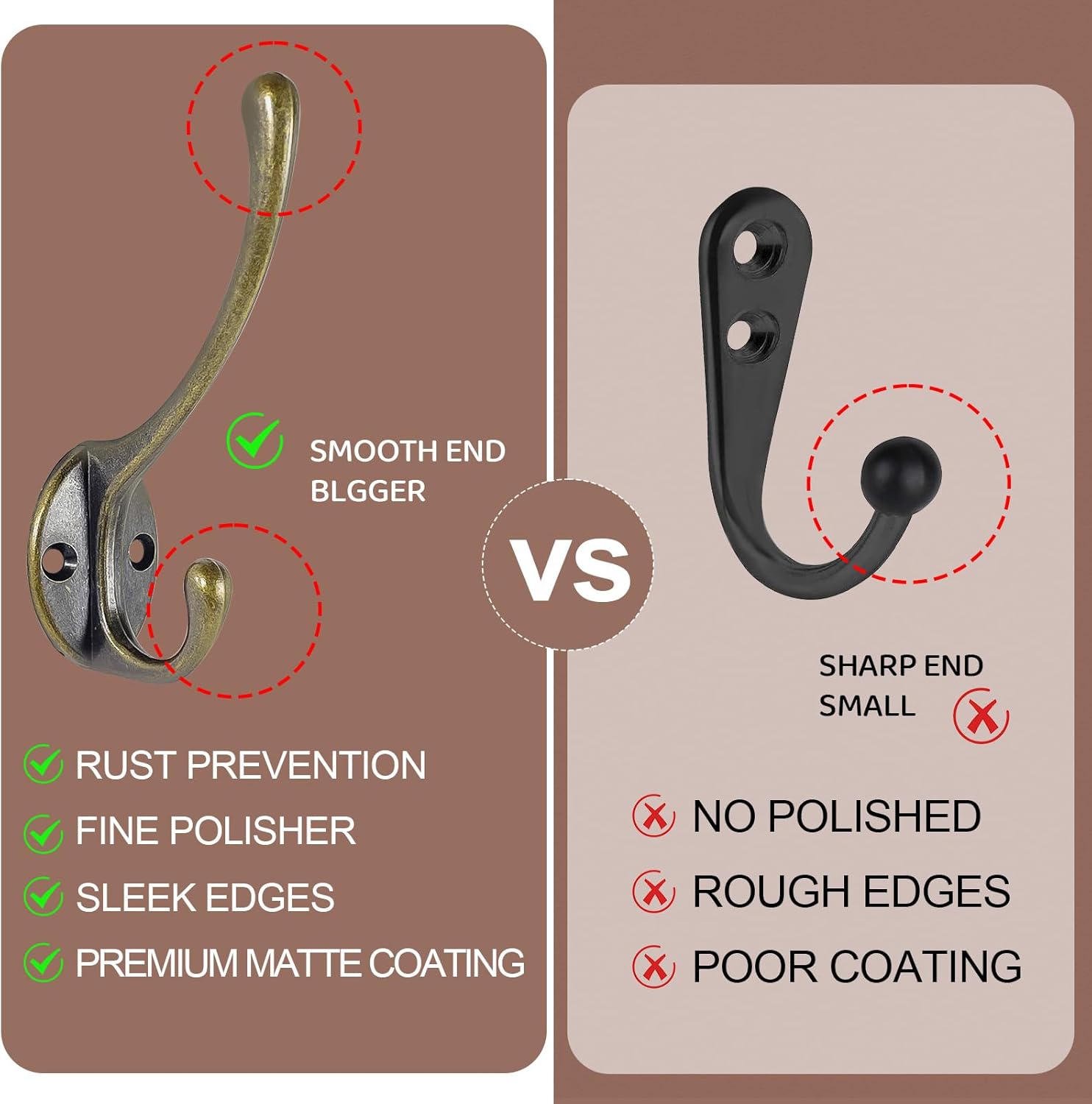 - 【HIGH LOAD-BEARING CAPACITY】 The coat hooks for wall is made of sturdy and durable zinc alloy material, ensuring its stable structure and high high gravity Polished and plated treatment not only enhances the appearance texture of the coat hook, but also strengthens its wear-resistant, corrosion-resistant and rust-resistant properties to ensure its durability.