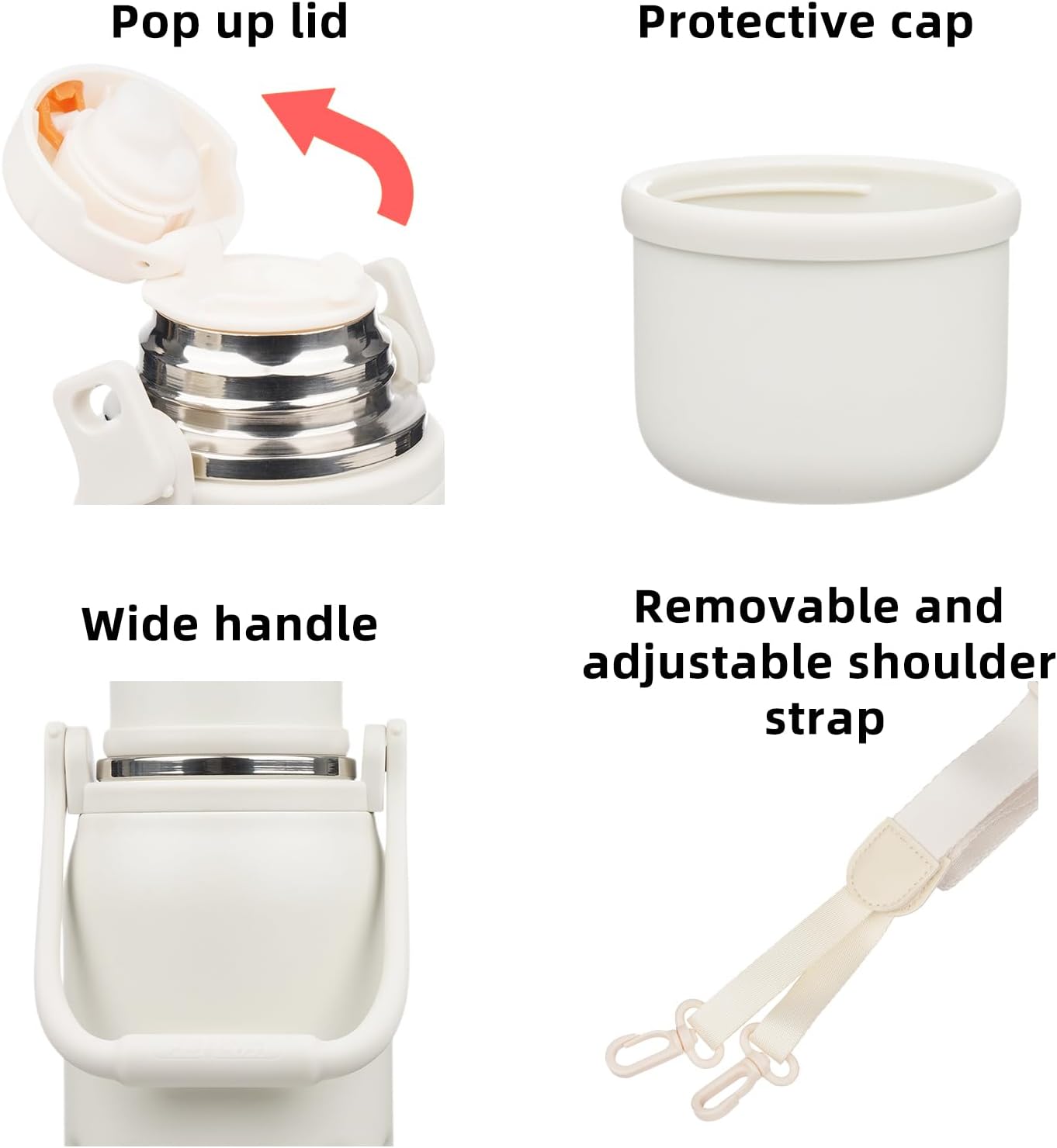 - BPA-Free Water Bottle with Carry Handle and Shoulder Strap: Has a silicone spout and a shoulder strap, all can removable for easy cleaning, comfortable handle makes it easy to carry, also making it an ideal choice for outdoor activities or everyday use